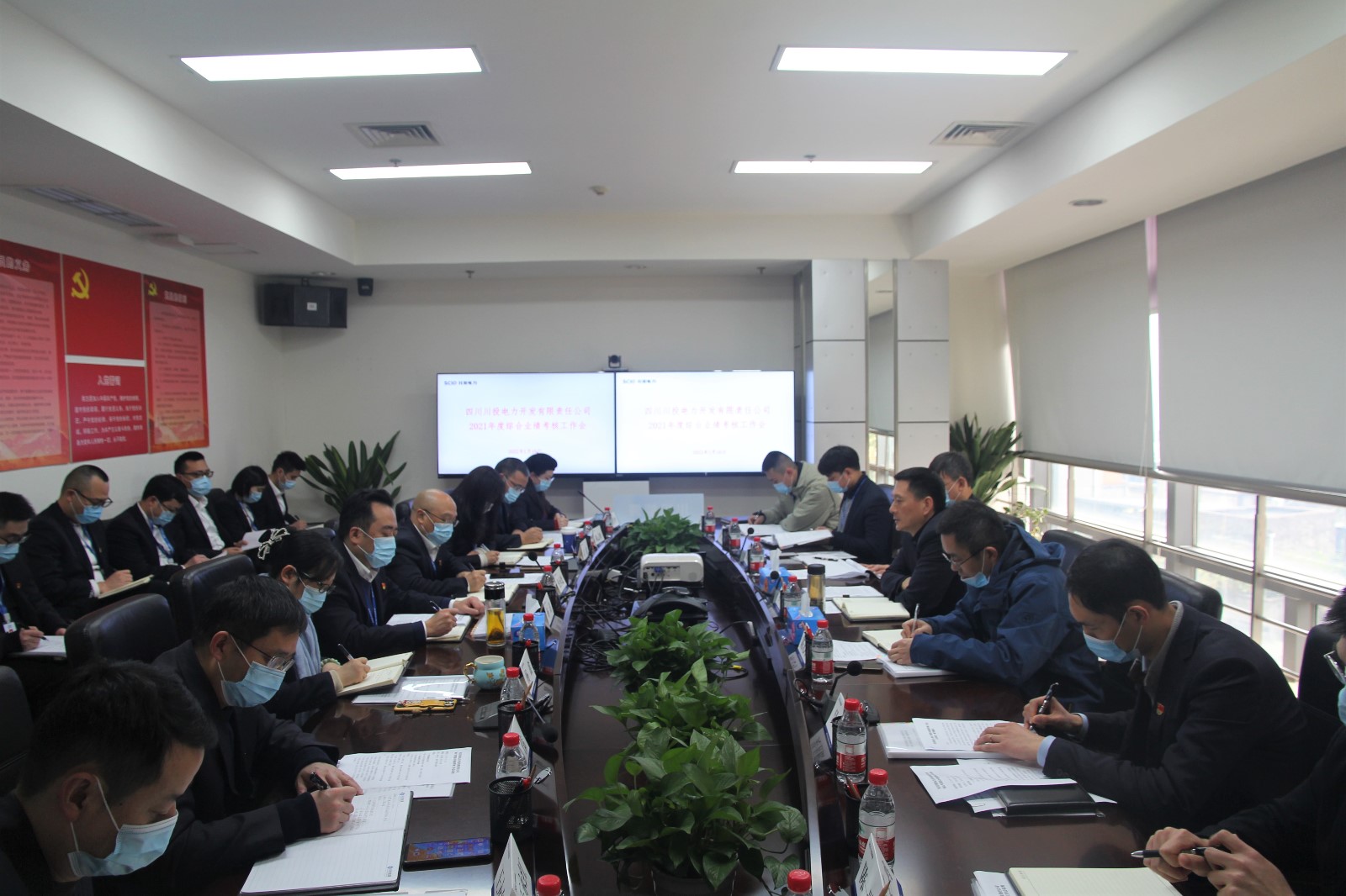 根據(jù)考核安排部署,楊洪及班子成員分別率領(lǐng)四個(gè)考核工作小組,于2022年1月10日至14日分赴攀枝花水電、川投電力(槽漁灘)、交大光芒與天彭電力開展綜合業(yè)績考核工作。綜合業(yè)績考核采取現(xiàn)場匯報(bào)、民主測評(píng)、個(gè)別談話與資料查閱的方式進(jìn)行。