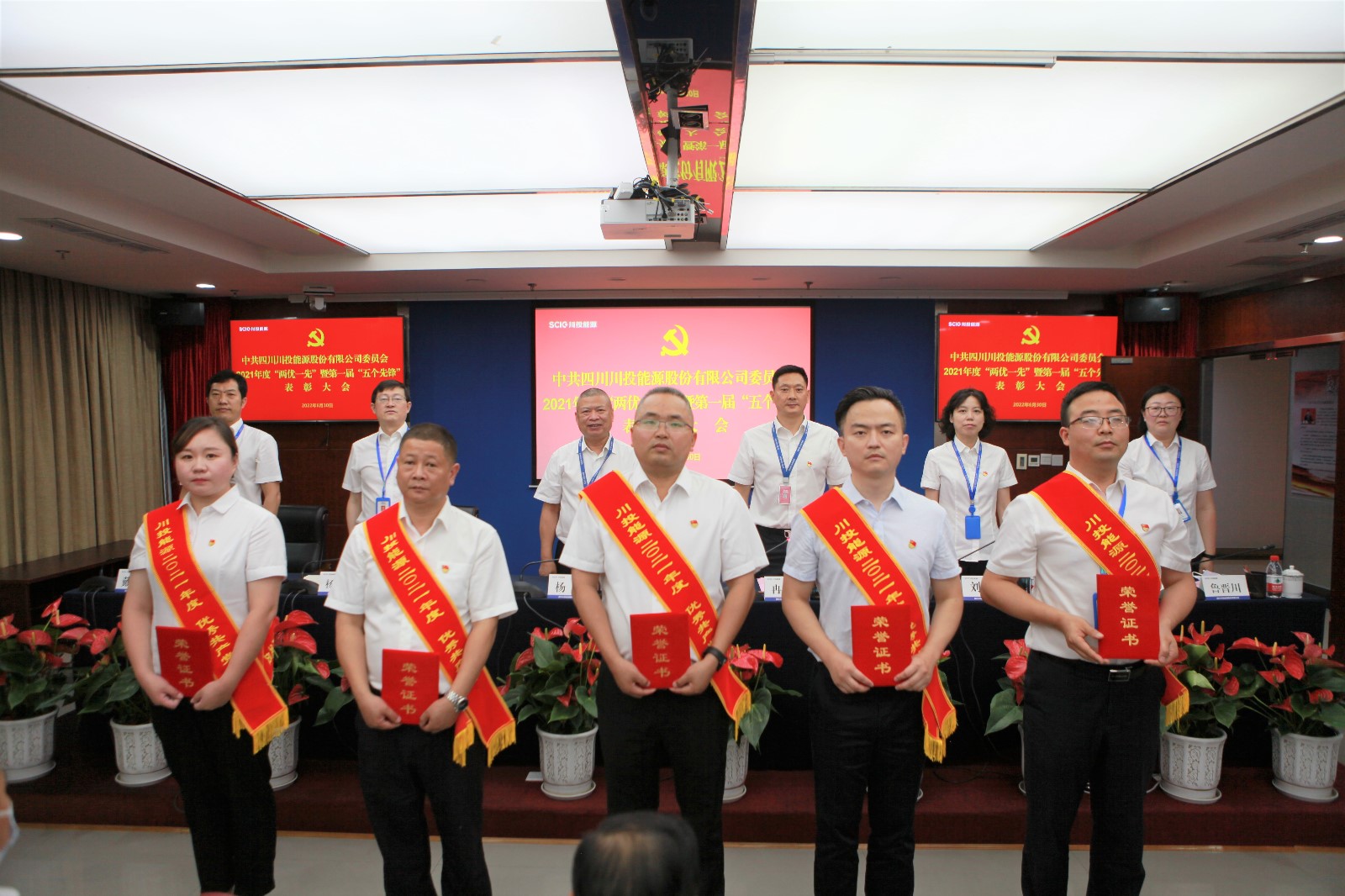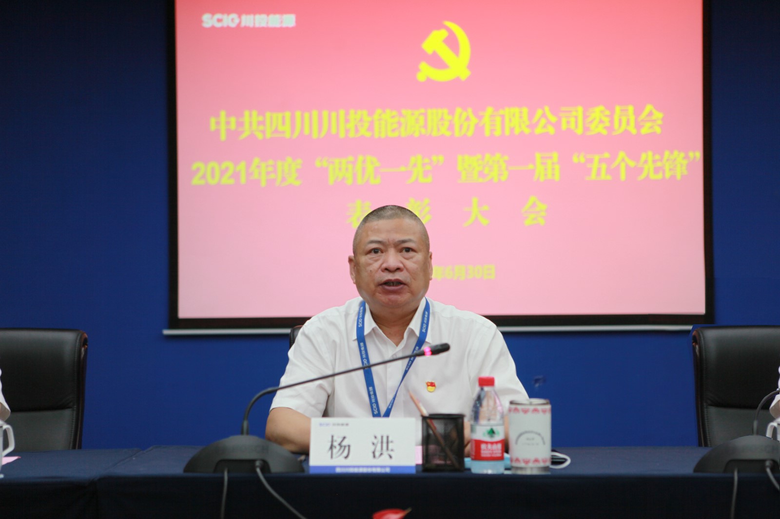為深入學(xué)習(xí)貫徹習(xí)近平總書記來川視察重要指示精神,熱烈慶祝中國(guó)共產(chǎn)黨成立101周年,表彰公司改革發(fā)展中涌現(xiàn)出的優(yōu)秀黨員、優(yōu)秀黨務(wù)工作者、先進(jìn)基層黨組織和“五個(gè)先鋒”,6月30日,川投能源黨委召開川投能源2021年度“兩優(yōu)一先”暨第一屆“五個(gè)先鋒”表彰大會(huì)。公司黨委書記、副董事長(zhǎng)、總經(jīng)理?xiàng)詈槌鱿⒅v話,黨委副書記、工會(huì)主席冉蘭平主持會(huì)議。