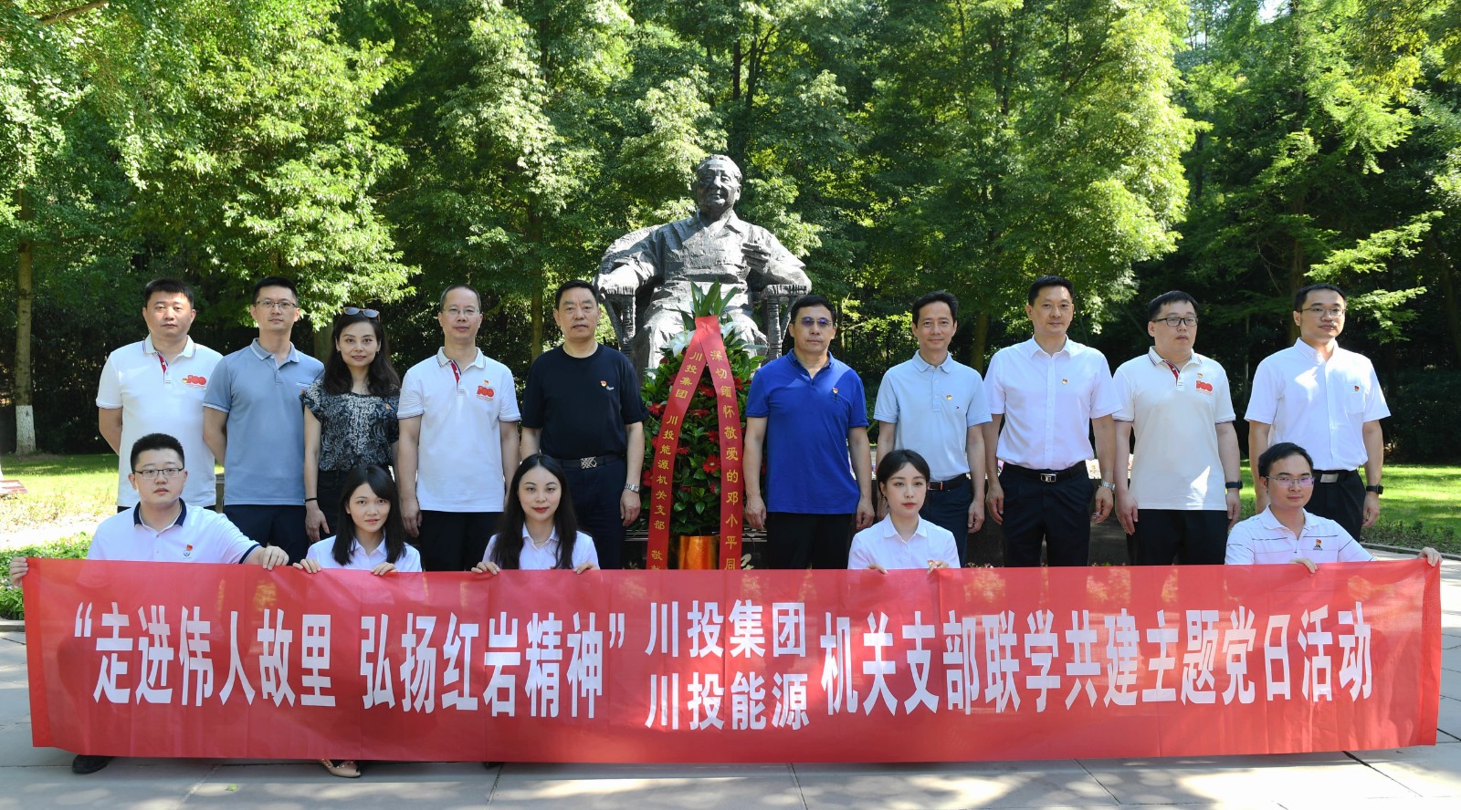 在建黨101周年之際,7月7日至8日,川投集團(tuán)、川投能源機(jī)關(guān)支部赴廣安市開展“走進(jìn)偉人故里,弘揚(yáng)紅巖精神”聯(lián)學(xué)共建主題黨日活動(dòng),緬懷偉人豐功偉績(jī),弘揚(yáng)先輩奮斗精神,繼承紅色優(yōu)良傳統(tǒng)。集團(tuán)公司黨委副書記、董事鄧凱,黨委委員、副總經(jīng)理王懷林,副總經(jīng)理張昊參加活動(dòng)。