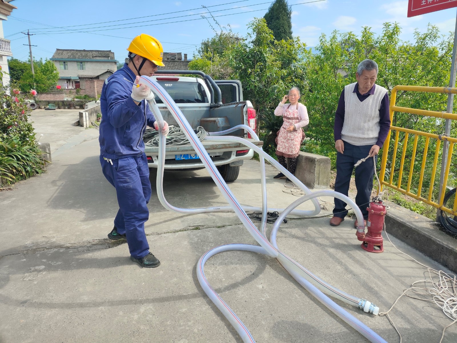 “大爺,抽水耕地時(shí)一定要注意安全,不要破壞電線的絕緣層,避免電線裸露漏電……”