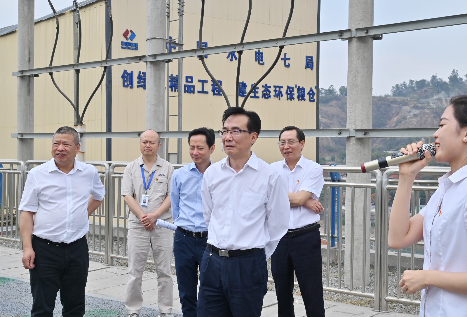 吳曉曦一行先后來到銀江水電站施工變電站觀景平臺、上游圍堰詳細了解項目整體規劃、建設意義、工期計劃、目前施工進度、安全環保及防洪度汛等情況。