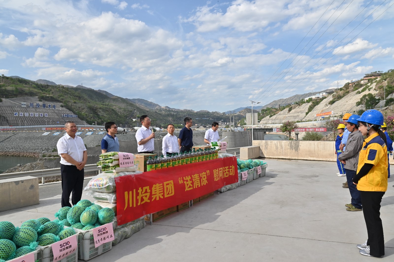 督導檢查組深入康家溝渣場、大壩基坑施工現場,重點檢查了攀水電公司“迎大運?保安全”集中整治、重大事故隱患專項排查整治、安全生產責任落實以及風險辨識管控情況,并代表集團公司慰問了攀水電公司及電站參建單位一線員工,為大家送上防暑降溫物資。
