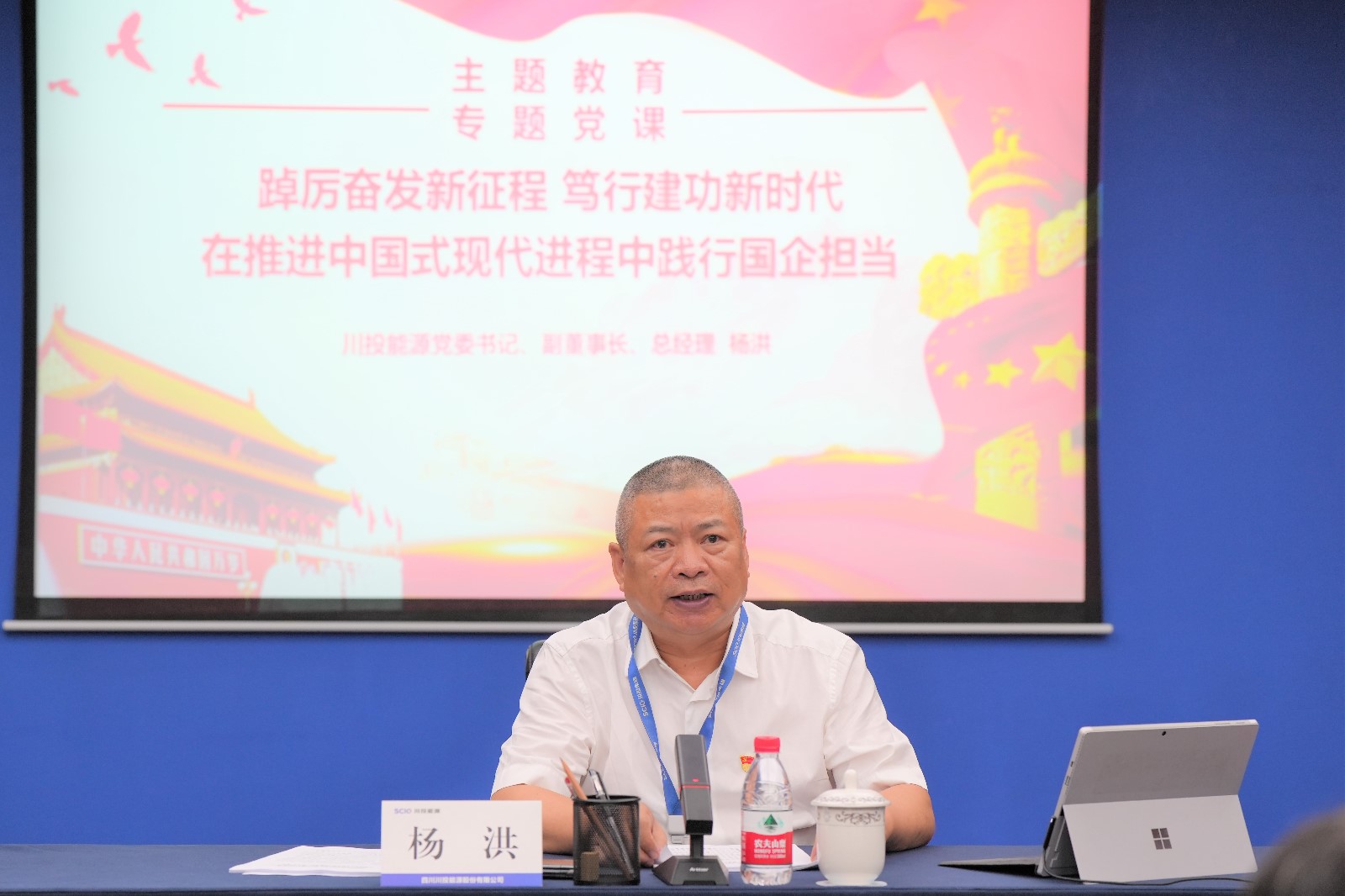 隨后,他以《踔厲奮發新征程、篤行建功新時代,在推進中國式現代進程中踐行國企擔當》為題,結合自身學習工作實際,從“中國式現代化理論體系的發展演進歷程”“認識把握中國式現代化的中國特色、本質要求、重大原則”“在中國式現代化進程中貢獻川投能源力量”等3個部分進行講授。