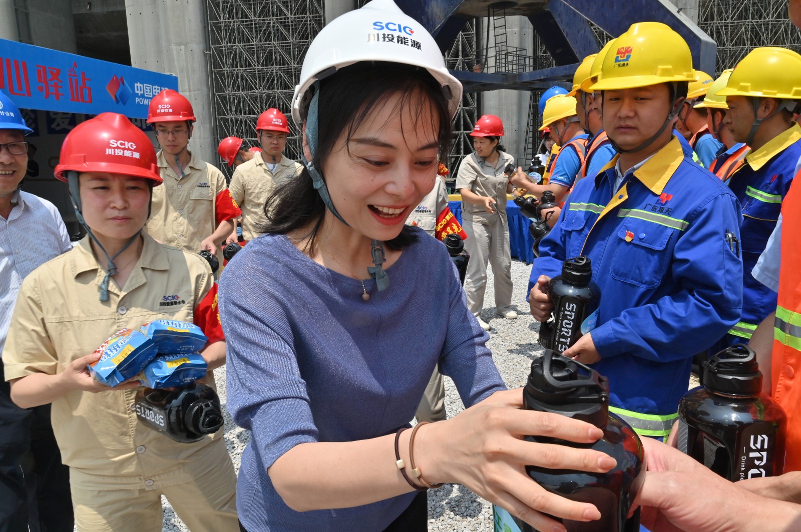 當日下午,朱莉一行對銀江水電站上游圍堰、基坑廠房壩段等防汛防災重點領域進行了現場檢查,聽取工程建設情況,并為銀江水電站工地“愛心驛站”進行揭牌,為一線建設者們送上夏季清涼物品和誠摯問候。