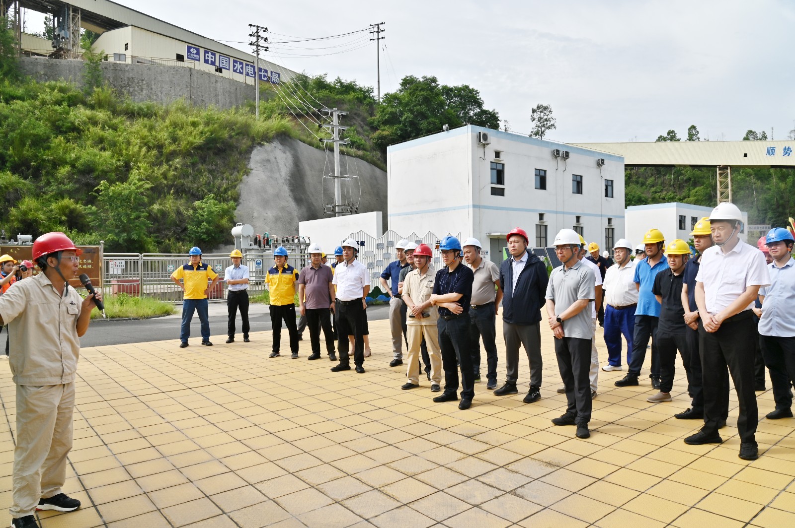 會前,與會人員赴銀江水電站觀景平臺、上游圍堰、壩頂、安裝間、下游交通橋等部位進行實地踏勘,并聽取了工程建設、機電安裝、安全環保、防汛減災、應急值守等情況匯報。