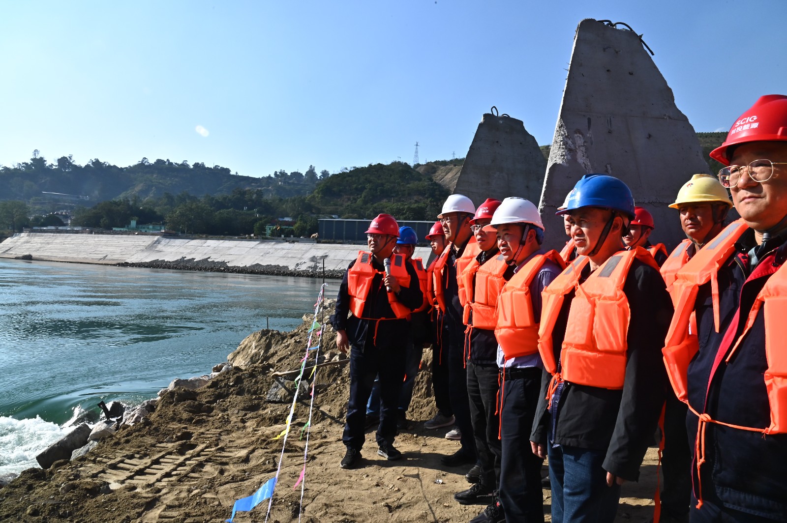 11月18日,李文志座談聽取了攀水電公司及主要參建單位匯報銀江水電站工程建設及導流明渠截流準備情況,強調(diào)要加大施工資源投入,有序組織導流明渠截流,按期推進工程蓄水和首臺機組并網(wǎng)發(fā)電任務。要壓緊壓實各方責任,著力加強現(xiàn)場管控調(diào)度,統(tǒng)籌推進工程施工、各項驗收、設備調(diào)試、投產(chǎn)準備等工作。要守牢安全底線,深刻汲取各類事故教訓,深入開展隱患排查整治,落實落細交叉作業(yè)、高處作業(yè)、臨水作業(yè)、動火作業(yè)的安全防護措施,堅決遏制事故發(fā)生。