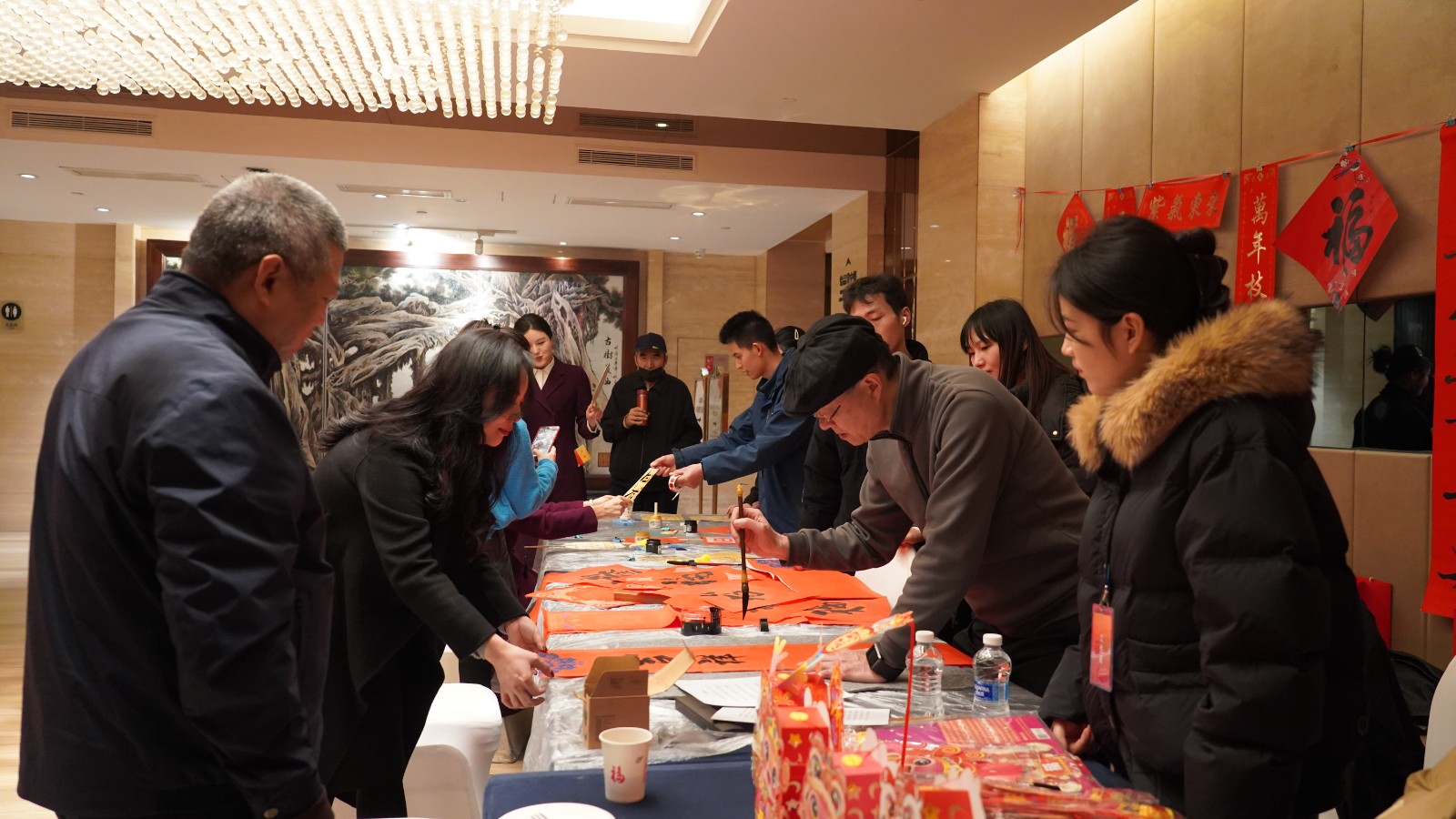案桌上,筆墨凝香,職工們紛紛揮毫潑墨,現場創(chuàng)作了一幅幅新春對聯(lián)和剪紙畫。紅紙黑字,一個個“福”字躍然紙上,風格多樣的春聯(lián)傳遞著溫暖與喜慶。每一筆、每一劃都融入了職工們對新春的祝福與美好期許,為即將到來的新年增添了濃厚的文化氛圍。