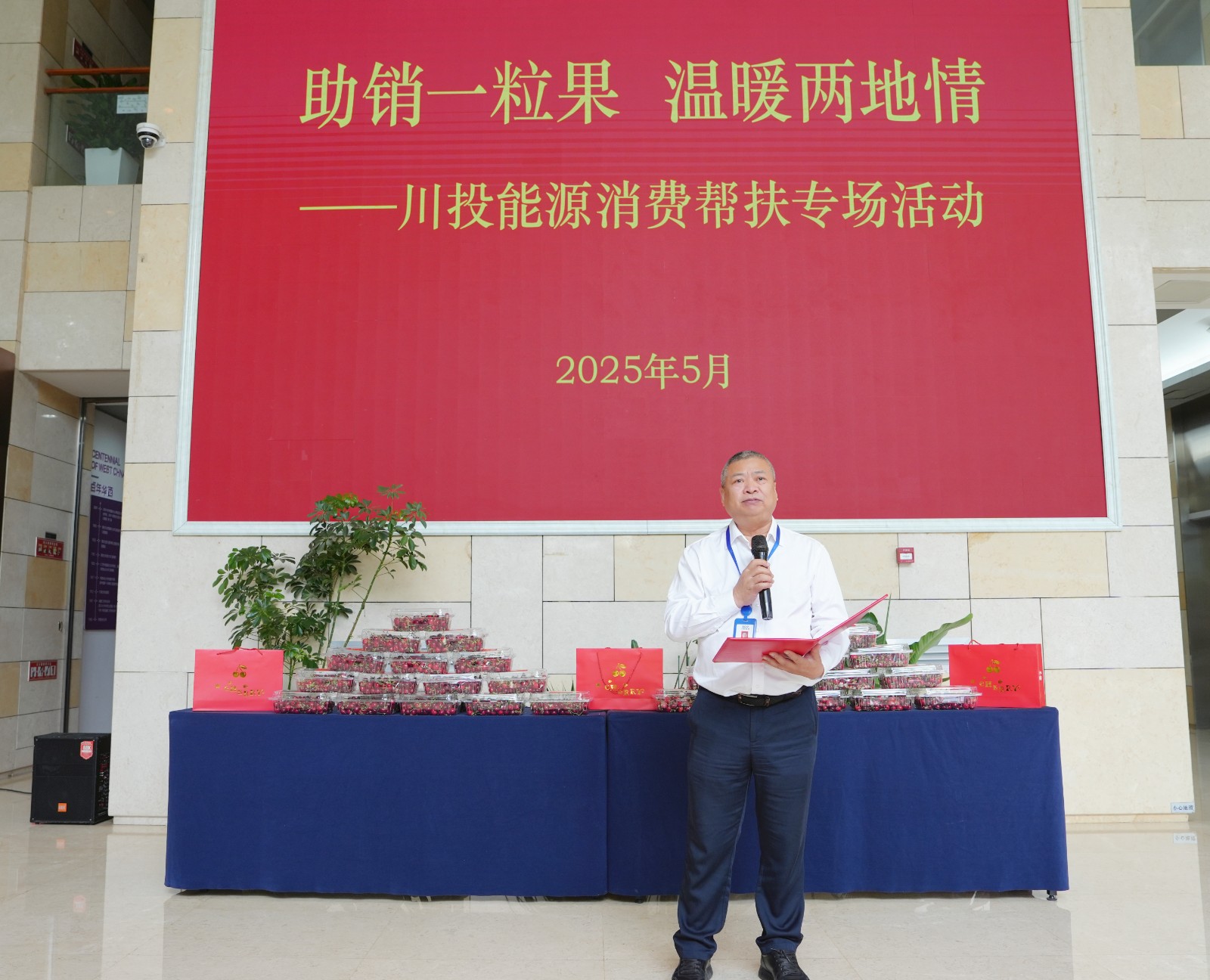 楊洪代表川投能源向參加活動的儀隴縣、馬鞍鎮、福臨鄉一行人員表達感謝和歡迎,他表示,今天的活動不僅是為滯銷車厘子“找出路”,更是為鄉村振興“拓新路”,川投能源將以本次活動為起點,一如既往做好托底性幫扶工作,強化黨建引領,統籌要素保障,加強全面對接,讓幫扶從“一時解困”走向“長期共贏”。