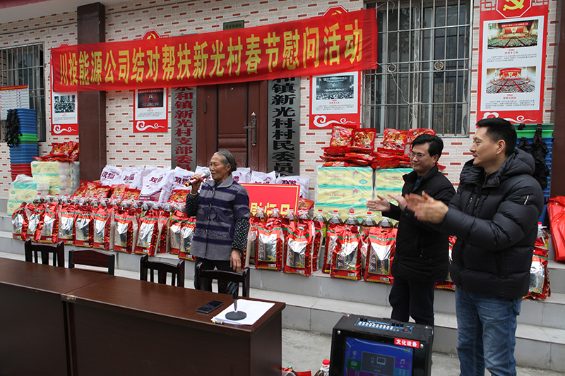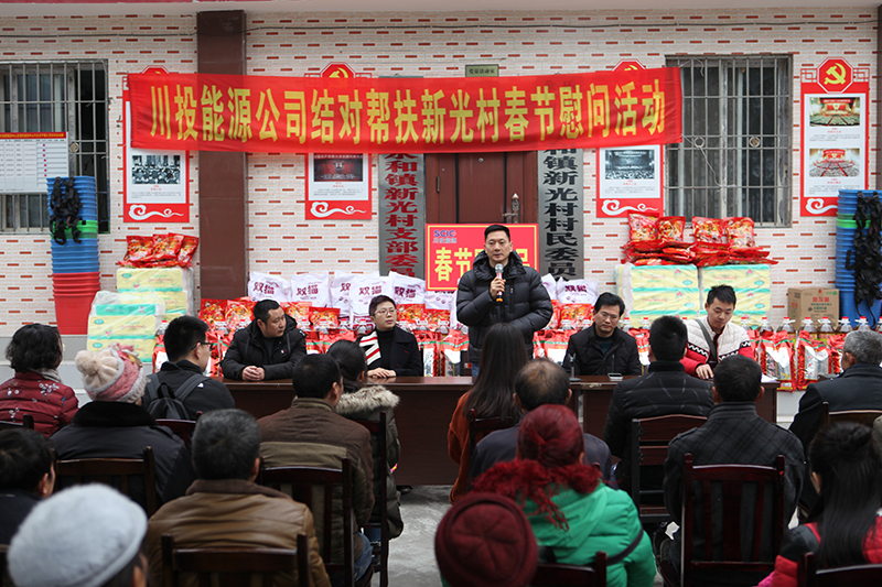 慰問現場,冉書記代表公司黨委和全體員工,對新光村父老鄉親表示誠摯的新春祝福和問候。冉書記指出,黨的十九大吹響了全面消滅貧困、實現小康號角,經過幾年的努力,川投能源對口幫扶村面貌煥然一新,這得益于黨和國家的好政策,得益于扶貧干部和當地村干部的共同努力,得益于廣大鄉親父老的勤勞、智慧和汗水。接下來,川投能源將繼續深入貫徹中央、省委及集團公司精準脫貧精神,創新扶貧工作思路,提高幫扶工作標準,立足實際,努力為幫扶村群眾辦更多的實事、好事,以優異的工作業績喜迎新中國成立70周年。