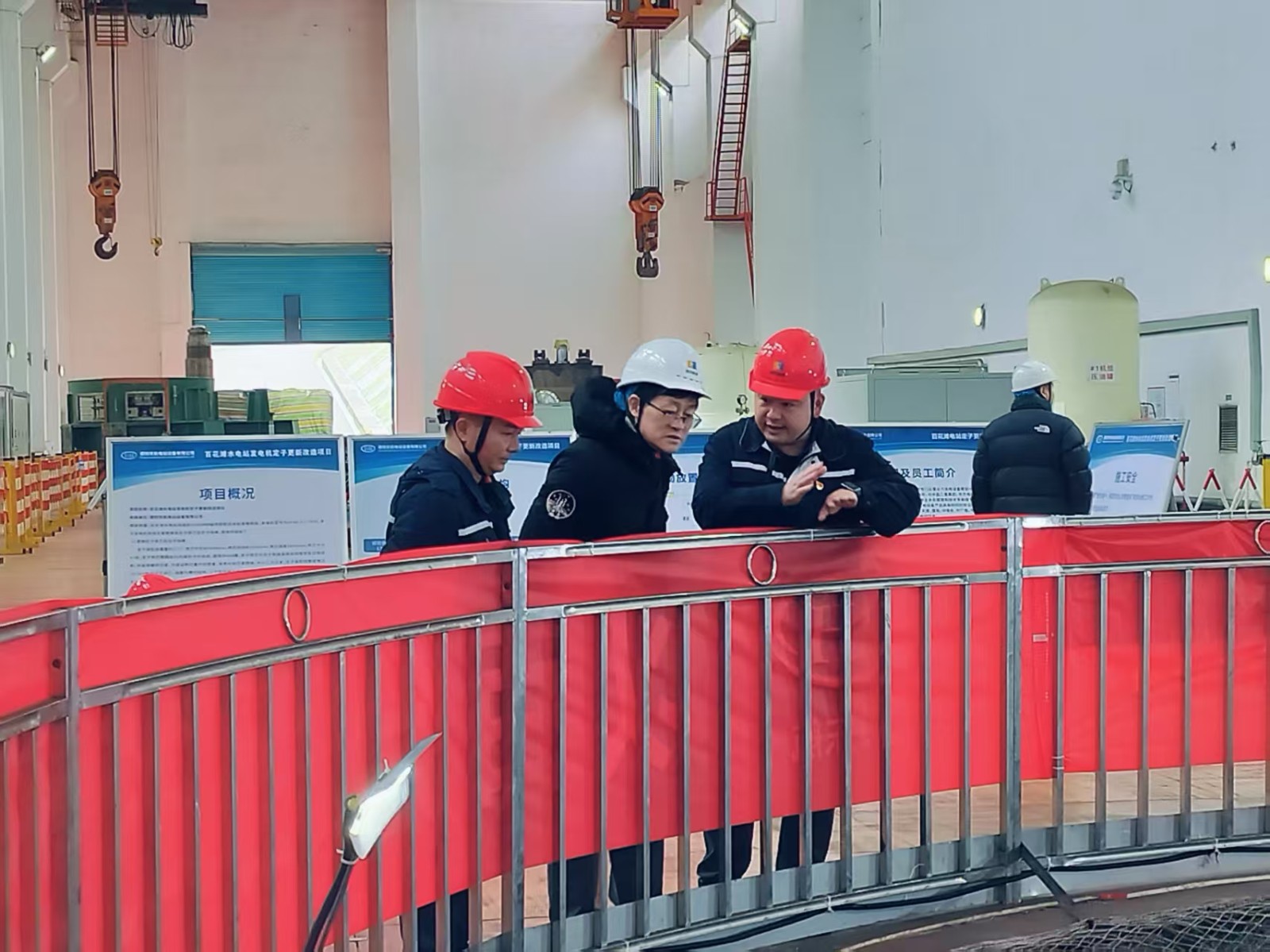 上午,檢查組首站抵達(dá)百花灘電廠,分別前往大壩、主廠房等關(guān)鍵區(qū)域,重點(diǎn)察看了3號(hào)機(jī)組定子更新改造現(xiàn)場(chǎng),詳細(xì)詢問(wèn)設(shè)備運(yùn)行狀態(tài)及施工安全防護(hù)措施落實(shí)情況,并細(xì)致核查了電廠安全生產(chǎn)管理制度、操作規(guī)程、檢修方案等管理資料。電廠負(fù)責(zé)人全面匯報(bào)了當(dāng)前生產(chǎn)運(yùn)行狀況、3號(hào)機(jī)組A級(jí)檢修進(jìn)度及定子技改項(xiàng)目實(shí)施細(xì)節(jié)。在高奉山電廠,檢查組詳細(xì)核查安全生產(chǎn)措施落實(shí)情況,重點(diǎn)詢問(wèn)來(lái)水情況、水位調(diào)度策略、設(shè)備檢修進(jìn)度及生產(chǎn)經(jīng)營(yíng)總體態(tài)勢(shì),認(rèn)真聽(tīng)取電廠重點(diǎn)工作推進(jìn)匯報(bào)。在槽漁灘電廠、炭素廠和硅鈣廠,檢查組實(shí)地察看有關(guān)生產(chǎn)經(jīng)營(yíng)情況。