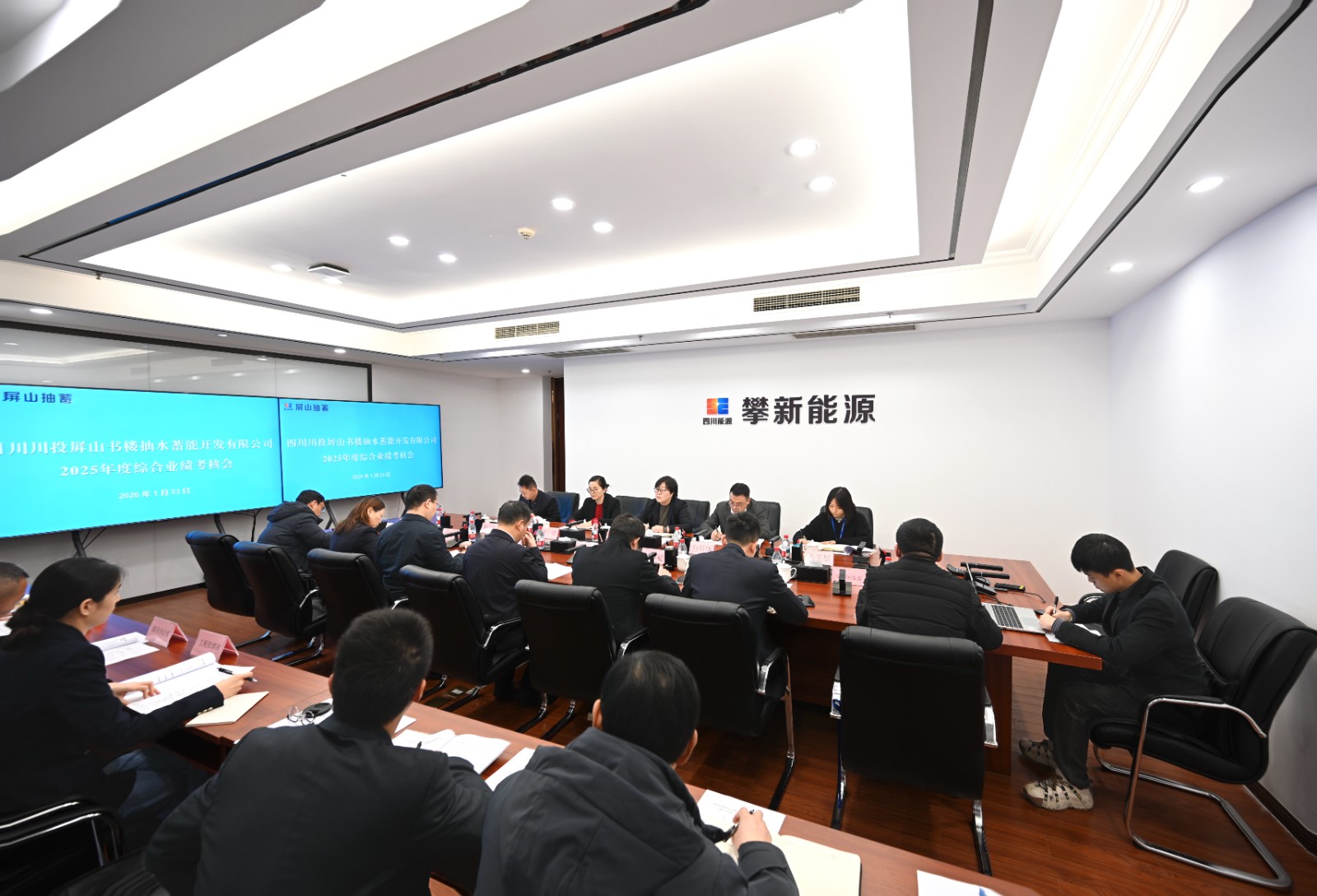 1月23日,川投能源董事會(huì)秘書、總法律顧問魯晉川帶隊(duì)赴屏山抽蓄公司開展2025年度綜合業(yè)績考核。川投能源副總經(jīng)理、屏山抽蓄公司董事長王行仁出席考核會(huì)。川投能源綜合業(yè)績考核組,屏山抽蓄公司經(jīng)營班子成員、中層干部、職工代表參加會(huì)議。
