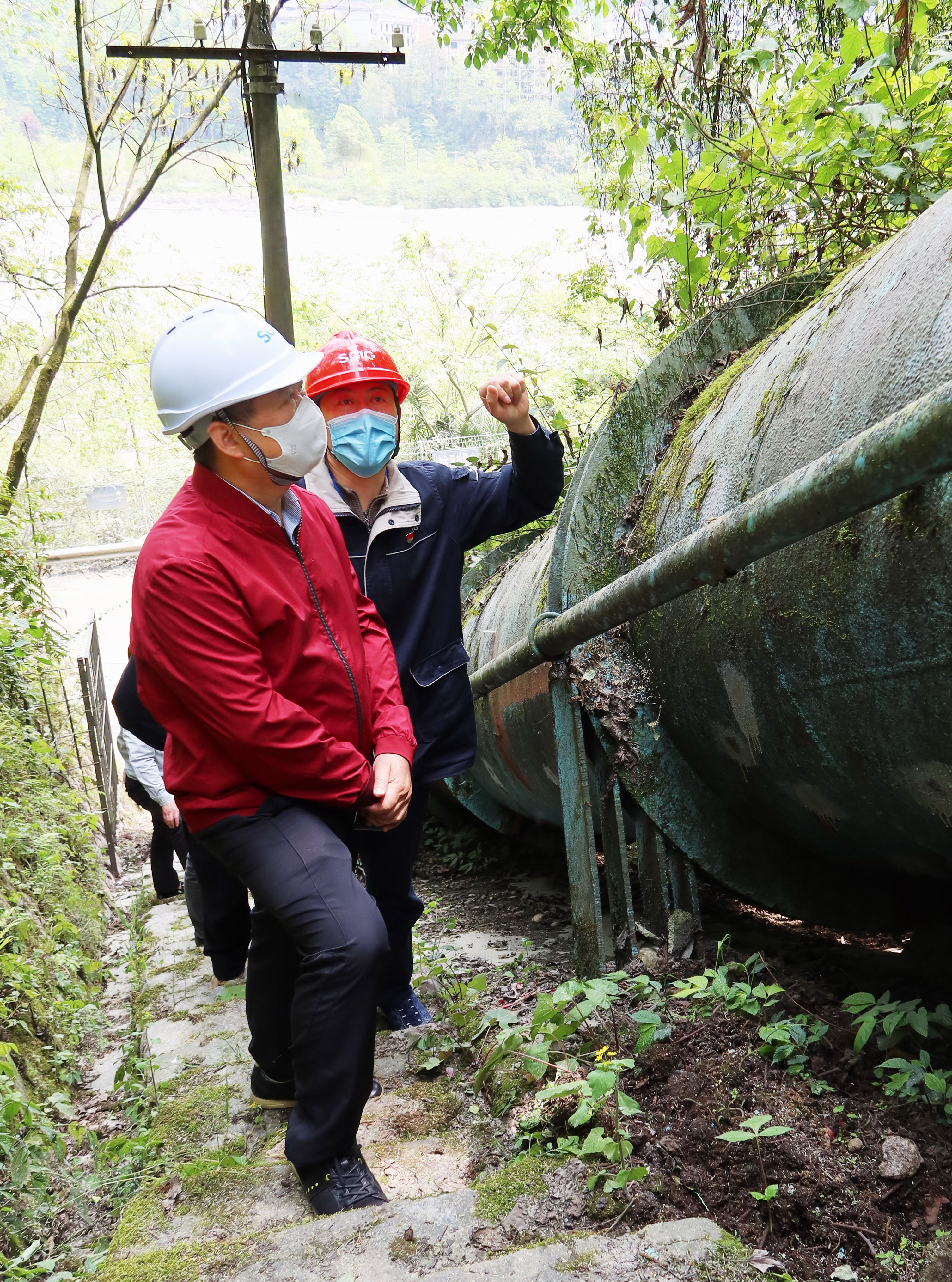 4月29日,川投能源黨委書記、副董事長、總經理楊洪率隊輕車簡從深入一線企業,暗訪檢查天彭電力疫情防控常態化條件下汛前、五一節前安全環保工作。