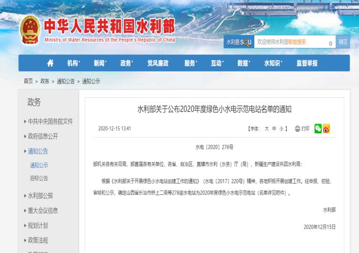 12月15日,國家水利部公布了2020年度綠色小水電示范電站名單。經綠色小水電示范電站評定委員會評定川投能源天彭電力鳳鳴橋一級水電站、鳳鳴橋二級水電站被確定為國家級綠色小水電示范電站,成功躋身四川省申報成功的13家綠色小水電示范電站之列。