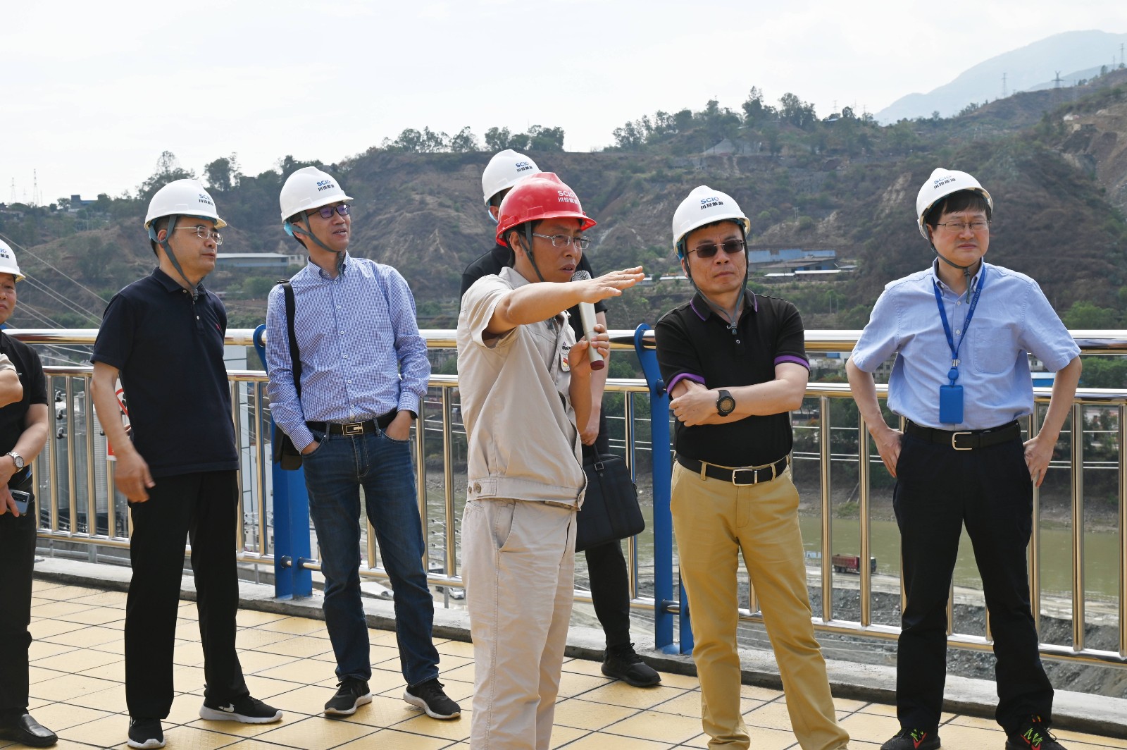 在銀江水電站施工變電站觀景平臺,孫前元一行聽取了目前工程總體情況介紹,仔細(xì)查看康家溝渣場、導(dǎo)流明渠等部位工程形象面貌及汛期值班值守工作等情況。