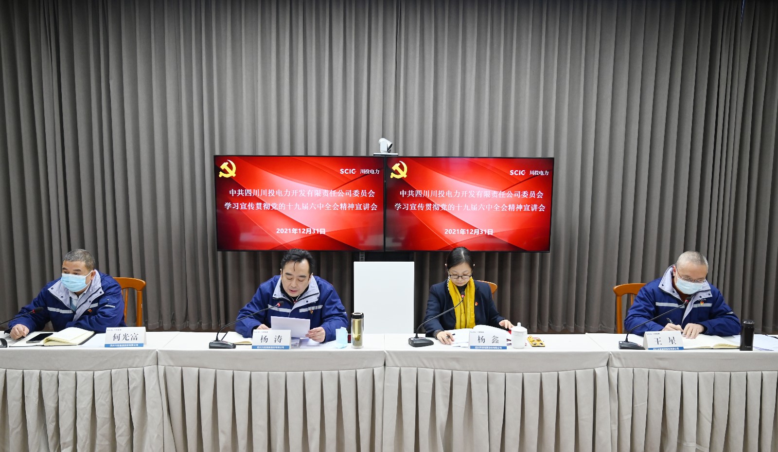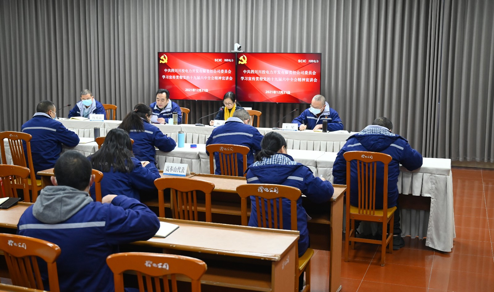 2021年12月31日,川投電力公司黨委在洪雅槽漁灘公司召開“學(xué)習(xí)宣傳貫徹黨的十九屆六中全會精神宣講會”。川投電力黨委書記、董事長楊濤在會上就十九屆六中全會精神作了專題宣講;宣講會由川投電力黨委副書記楊鑫主持。