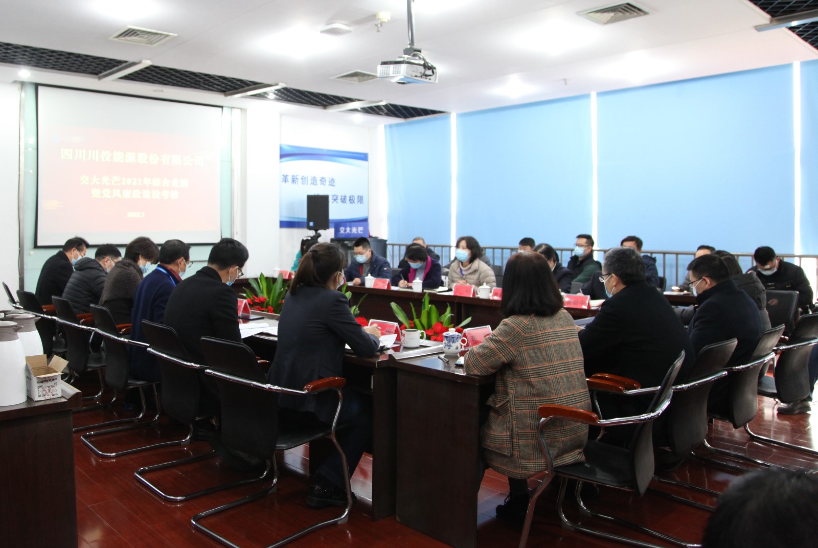 根據(jù)川投能源2021年度考核工作的統(tǒng)一部署,1月11日,川投能源黨委委員、財(cái)務(wù)總監(jiān)、考核組長劉好率隊(duì)赴交大光芒開展2021年度綜合業(yè)績暨黨風(fēng)廉政建設(shè)考核工作。川投能源考核組、交大光芒經(jīng)營班子、中層副職以上管理人員及一線員工代表參加考核會(huì),川投能源證券事務(wù)部、資本運(yùn)營部經(jīng)理魯晉川主持會(huì)議。