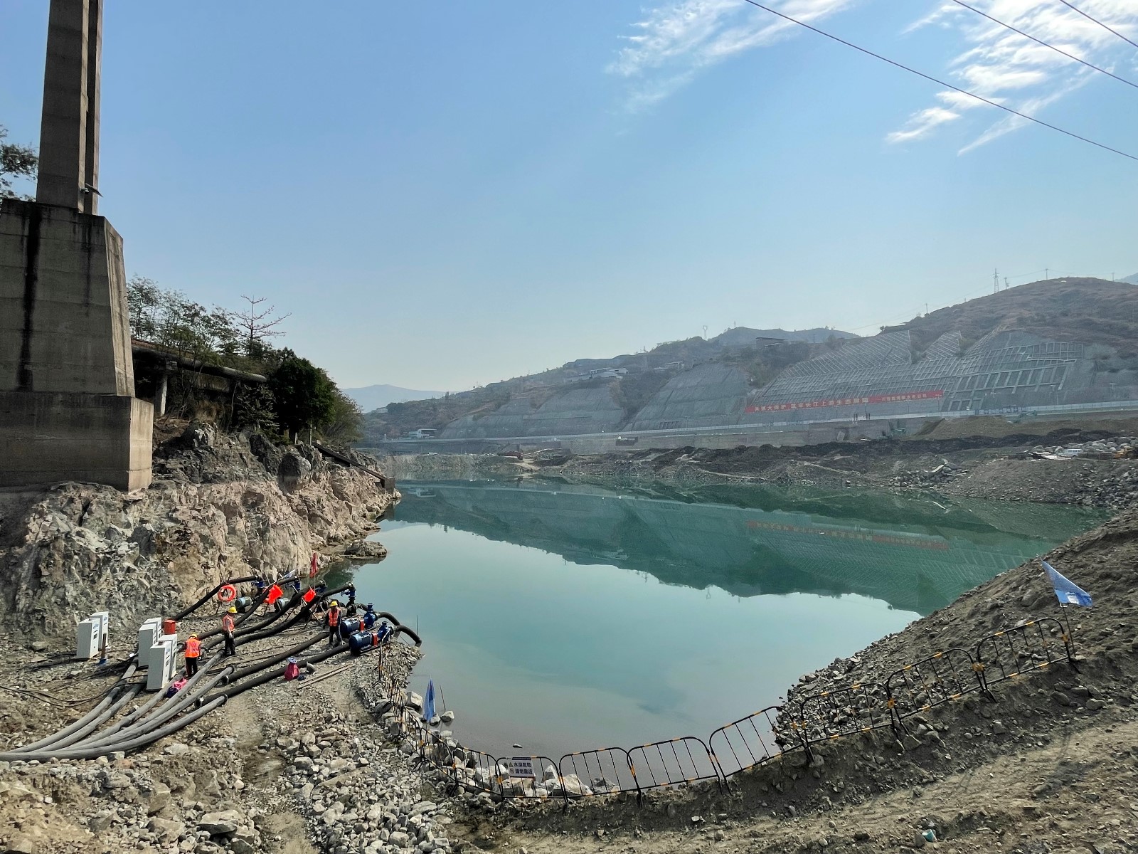 面對二期圍堰工期緊等實際困難,公司組織施工單位合理配置施工資源,精心組織現場施工,水電五局項目部領導春節期間帶頭堅守崗位,施工現場正常組織施工,順利完成二期圍堰閉氣重要節點目標,下一階段將重點做好圍堰加高培厚及土工膜安裝工作,確保汛前能按期完成施工;面對銀江大橋爭取2023年春節前具備通車條件的要求,公司認真組織審核施工方案,督促落實各項安全措施,重點關注掛籃安裝等工作,1#橋墩0#節段、右岸連接道路、下穿箱涵開挖等全部按照計劃順利推進;面對左岸邊坡開挖支護、G353國道改建與污水管道代建及地下管線遷改存在的施工干擾問題,公司積極與政府部門及主要參建單位溝通協商,明確布置方案及節點目標,做好交叉施工保障措施,各項工作正按照既定目標有序推進;面對即將來臨的汛期,公司提前組織開展地災隱患排查工作,針對檢查發現的問題下發整改通知,并督促施工單位認真整改,確保汛前完成整改工作。
