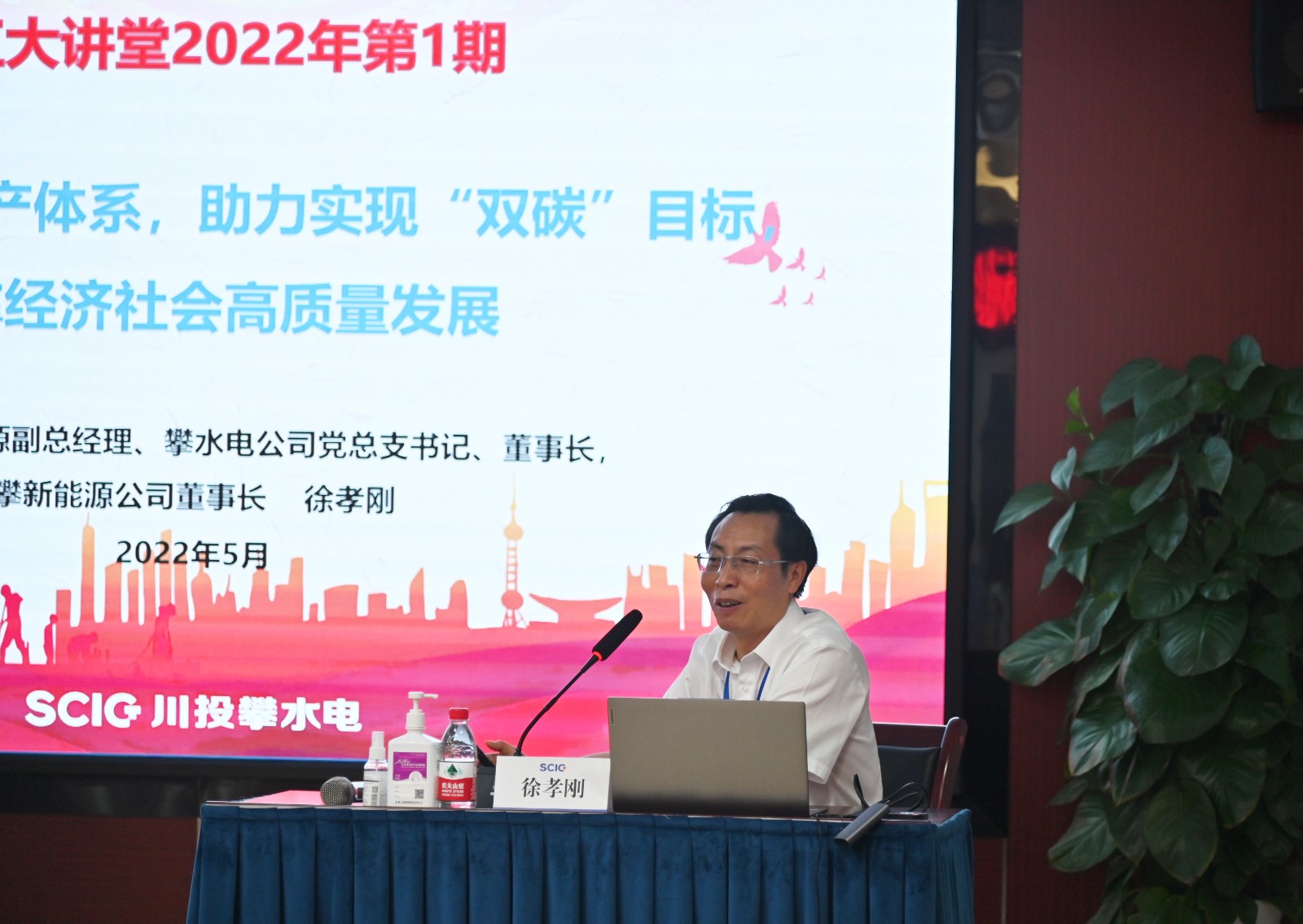 活動中,醫(yī)院急診科蘇曉勇主任、腫瘤科廖玲醫(yī)師分別以《熱愛生命,關(guān)注腫瘤》和《心肺復(fù)蘇術(shù)》為主題,為攀水電公司和參建單位員工代表帶來了的健康知識講座,并進(jìn)行了身臨其境的互動教學(xué)。徐孝剛講授了《構(gòu)建清潔能源生產(chǎn)體系,助力實(shí)現(xiàn)“雙碳”目標(biāo),支撐經(jīng)濟(jì)社會高質(zhì)量發(fā)展》為題的主題黨課,從“碳達(dá)峰與碳中和的背景”、“雙碳目標(biāo)的形勢要求”、“清潔能源體系在雙碳目標(biāo)中的重要地位”、“構(gòu)建清潔能源生產(chǎn)體系的實(shí)施路徑及公司相關(guān)工作開展情況”四個方面,向大家介紹了目前國家的能源發(fā)展戰(zhàn)略、發(fā)展要求和發(fā)展形勢,并向大家介紹了攀水電公司和攀新能源公司相關(guān)工作的推進(jìn)情況。徐孝剛講到,公司作為能源行業(yè)的國有企業(yè),在構(gòu)建清潔能源生產(chǎn)體系的過程中責(zé)任重大、使命光榮,并號召公司黨員群眾要不忘初心、牢記使命,為實(shí)現(xiàn)雙碳目標(biāo)積極做出更大的貢獻(xiàn)。