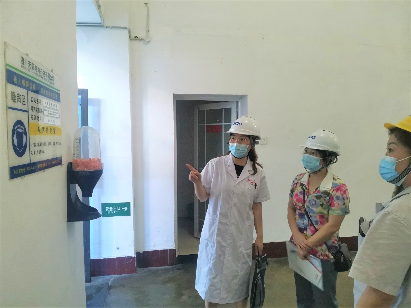 檢查組一行首先前往公司鳳鳴橋車間,現場查看生產現場職業衛生管理現狀,了解是否針對勞動環境中職業危害因素(噪聲)規范開展檢測、監測和評價,是否規范配置職業病危害警示標識、職業病防護設施、應急救援設施,是否規范發放、管理職業病防護及防疫用品(防噪耳塞、醫用口罩)并督促員工佩戴,相關管理制度和規程是否規范上墻、執行到位。
