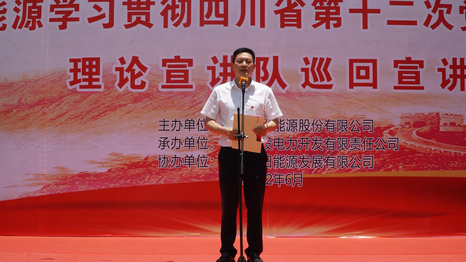 宣講在群山環繞、瓜果飄香、彩旗飄飄的電廠職工運動場拉開帷幕。在開場致辭中,冉蘭平代表川投能源黨委向默默堅守在甘洛縣玉田電廠的每一位干部職工表示感謝,也向電廠無私奉獻、艱苦奮斗,“舍小家為大家”的精神表示致敬。他指出,本次宣講旨在向電廠全體干部職工宣講習近平總書記來川視察重要講話精神和中國共產黨四川省第十二次黨代會精神,切實推動省十二次黨代會精神在基層落地生根。他要求,要學習領會好、宣傳宣講好、貫徹落實好省第十二次黨代會精神,將其作為當前和今后一段時期重要政治任務,進一步增強“四個意識”、堅定“四個自信”、做到“兩個維護”,為打造“國內一流清潔能源上市公司”,推動治蜀興川再上新臺階不懈奮斗,以積極飽滿的實際行動和優異成績迎接黨的二十大勝利召開。