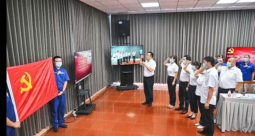大會在雄壯的國歌聲中正式開始。楊濤帶領新入黨的黨員代表進行了莊嚴的入黨宣誓,全體參會黨員也一起面對黨旗重溫入黨誓詞,一起回憶當初入黨時錚錚誓言,時刻提醒自己不忘共產黨員的初心使命,在各自的崗位上爭優創先。