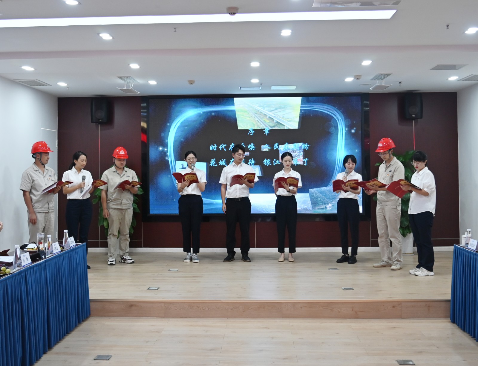 會議在公司青年職工精心準備的詩歌朗誦“銀江組歌”中拉開帷幕,“時代在呼喚,人民在期盼。花城在等待,銀江我來了……”公司各部門員工代表以朗誦的方式聲情并茂的講述了銀江水電站自2019年7月開工建設三年歷程,贏得了參會人員的陣陣掌聲。