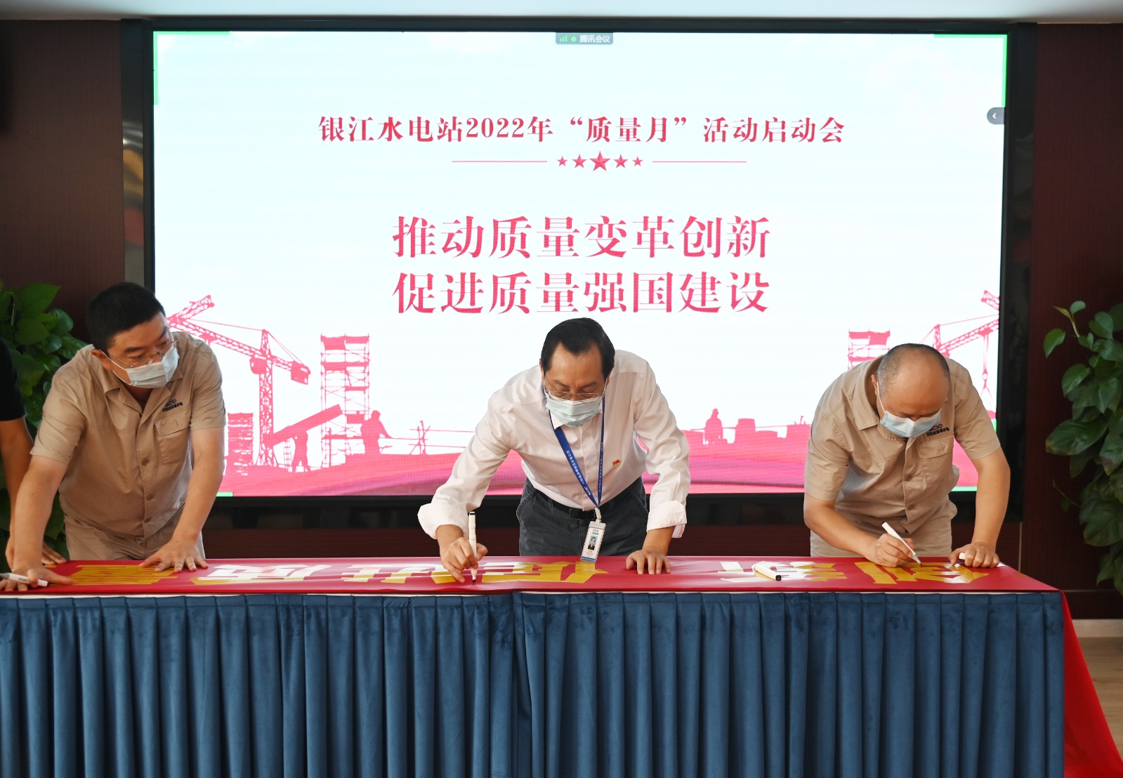 會上,公司組織學(xué)習(xí)了國家市場監(jiān)管總局等21個(gè)部門聯(lián)合印發(fā)的《關(guān)于開展2022年全國“質(zhì)量月”活動(dòng)的通知》,宣讀了公司《關(guān)于開展銀江水電站2022年“質(zhì)量月”活動(dòng)的通知》,各參建單位匯報(bào)了各自“質(zhì)量月”活動(dòng)方案,提出了與公司活動(dòng)方案相結(jié)合的具體措施。