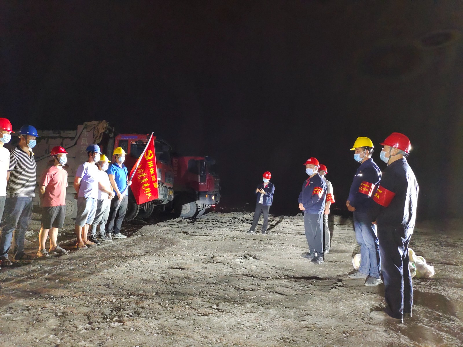 9月6日晚,經(jīng)申請辦理工地通行證后,公司防汛防地災(zāi)值班領(lǐng)導(dǎo)、黨總支委員、紀(jì)檢小組長、總經(jīng)理助理楊銳帶領(lǐng)值班人員,對銀江水電站工地現(xiàn)場防洪度汛值班點位及施工現(xiàn)場進(jìn)行了檢查。受川投能源副總經(jīng)理、攀水電公司黨總支書記、董事長徐孝剛的委托,楊銳一行來到上游圍堰等部位,看望慰問勞碌一天晚上只能在車上休息的開挖及運(yùn)輸作業(yè)人員、夜間防汛值班人員共40余人,對他們的辛勤付出表示感謝,提前送上中秋節(jié)的祝福,希望他們在辛勤工作的同時也注意保護(hù)自身安全,嚴(yán)格做好防疫措施,共筑平安銀江。