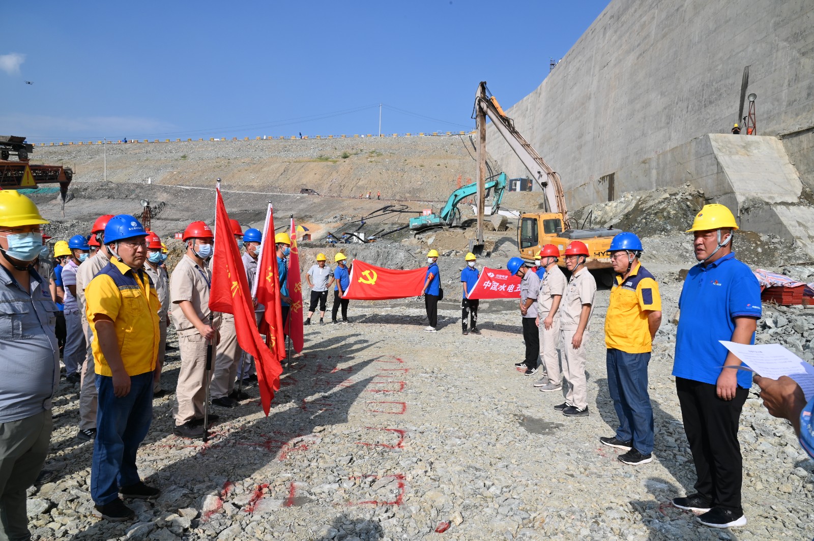 銀江水電站自2019年開工以來,公司組織各參建單位連續克服高溫酷暑、疫情常態化防控、地質條件差、征地拆遷推進難度大等困難,先后實現導流明渠過流、大江截流等重要節點目標,取得了提前一年大江截流的優秀成績,目前正全力向首臺機組投產發電重要目標沖刺。按照省委省政府、市委市政府和川投集團、川投能源關于“決戰四季度、大干一百天”的重要決策部署,公司認真謀劃,精心組織,9月29日順利開始了泄水系統首倉混凝土澆筑,實現了銀江水電站工程建設第四季度開門紅。澆筑過程中,攀水電公司機關第一、第二黨支部為一線作業人員送去了解暑良藥“綠豆湯”。