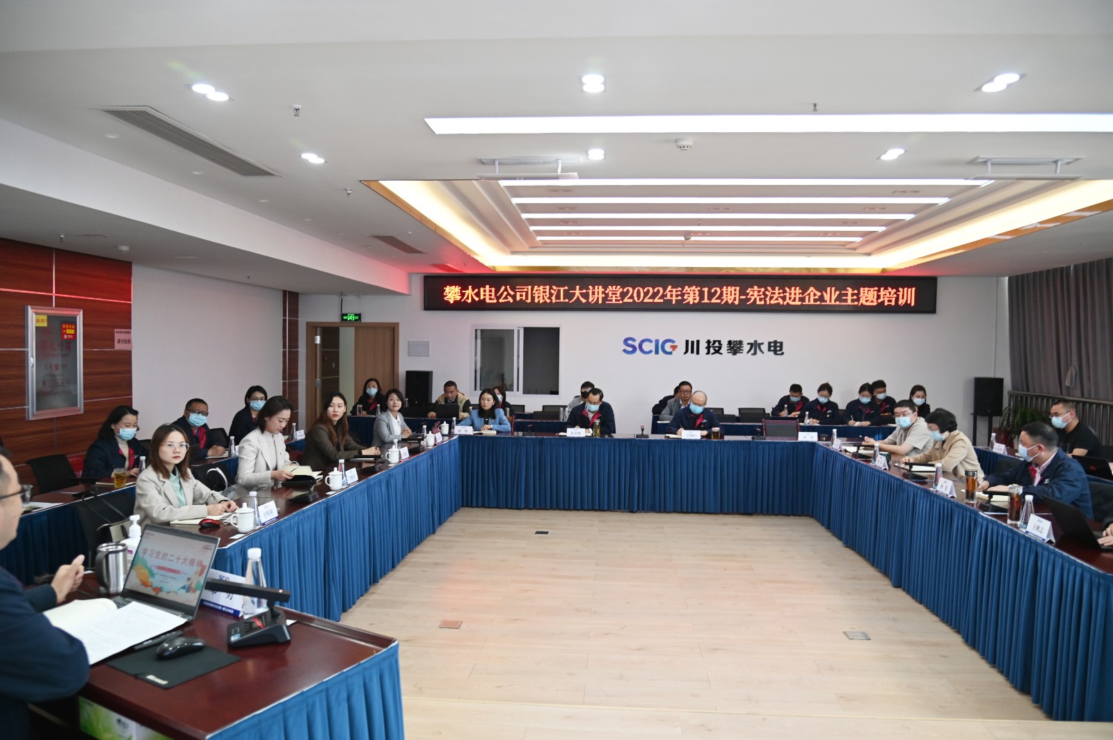 為深入學習宣傳黨的二十大精神和習近平法治思想,推動公司全員學習宣傳貫徹黨的二十大精神,按照省國資委、川投集團、川投能源《關于組織開展2022年憲法進企業主題活動的通知》和“憲法宣傳周”活動要求,2022年12月10日,攀水電公司組織開展了憲法進企業主題培訓,川投能源副總經理、攀水電公司黨總支書記、董事長、攀新能源公司董事長徐孝剛,攀水電公司黨總支副書記、總經理吳巍嶼,四川蜀攀律師事務所副主任趙艷出席會議,攀水電公司其他領導及員工共計30余人參加培訓。