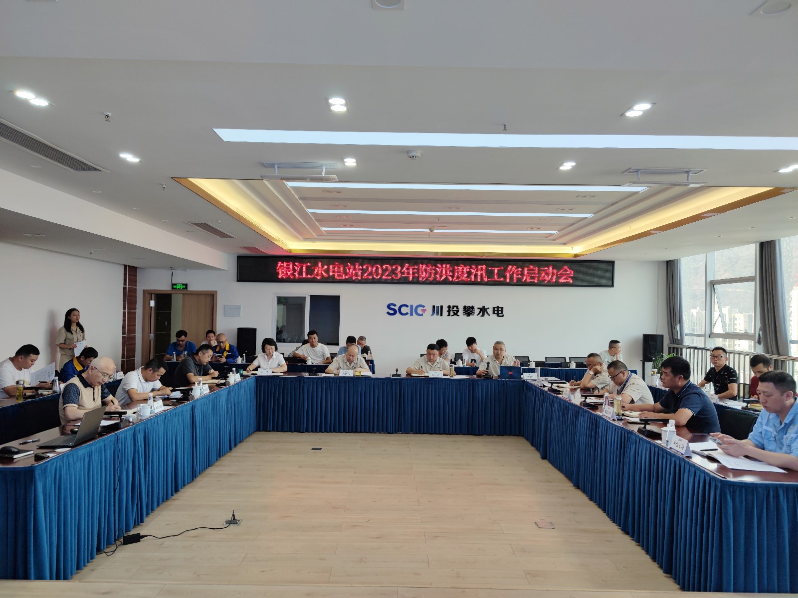 會上,楊銳傳達學習了《四川省能源局關于切實做好2023年能源項目建設汛前準備工作的通知》,公司工程管理部匯報了公司2023年防洪度汛準備工作情況,并對防洪度汛工作作了具體安排,嚴瑞平對相關工作進行了補充匯報。各參建單位逐一匯報了防洪度汛組織機構、防汛值班、度汛形象面貌、地災隱患排查整治、防洪度汛應急演練準備以及防汛物資落實等方面情況。