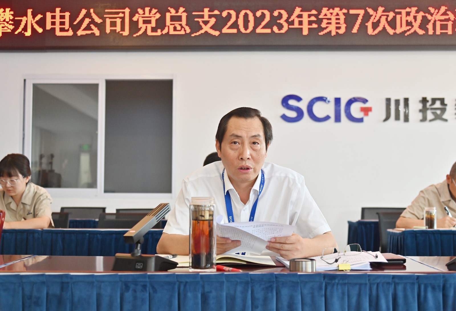 6月27日,攀水電黨總支在2620會議室召開了2023年第7次政治理論學習(擴大)會議,會議由川投能源副總經理、攀水電公司黨總支書記、董事長徐孝剛主持,黨總支政治理論學習會成員、各部門負責人、其他黨員、統戰對象、入黨積極分子共30余人參加學習。本次學習主要包括第一議題學習、上級指示精神、國企改革、安全環保、防汛減災、廉政警示教育、保密工作、主題教育專題研討八個部分內容。