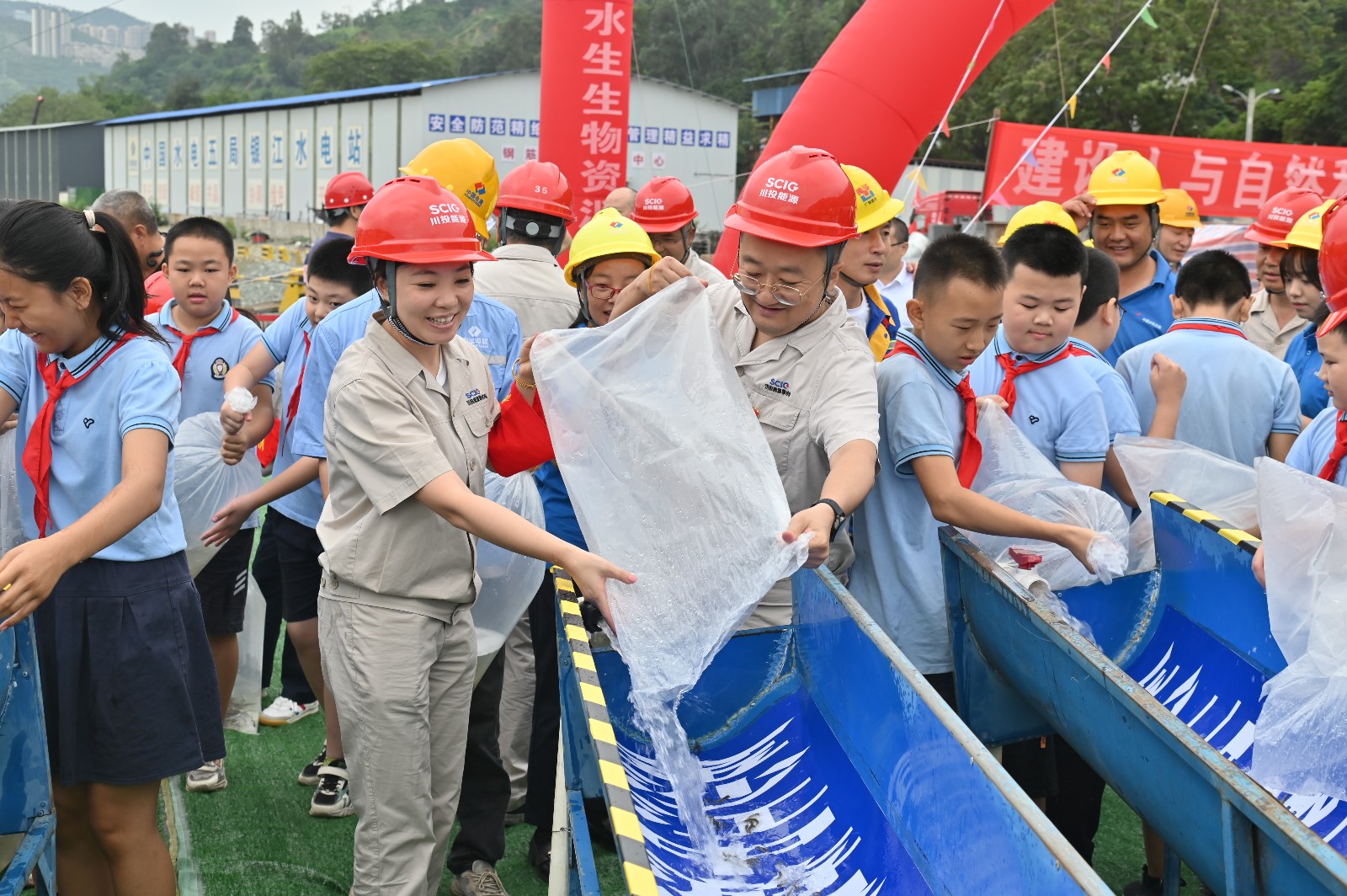 川投能源副總經理、攀水電公司黨總支書記、董事長徐孝剛宣布放流開始后,帶隊攜手銀江中心學校學生代表們一起放流,各參加活動人員在工作人員的指引下,共同參與放流。本次放流的魚苗均為金沙江特有珍稀魚類,有巖原鯉、白甲魚、長薄鰍及圓口銅魚4種,共計15.6萬尾,累計放流31.2萬尾。這對增加長江上游魚類種群數量,提高水域生態系統的穩定性,促進水生生物多樣性的恢復具有積極作用。