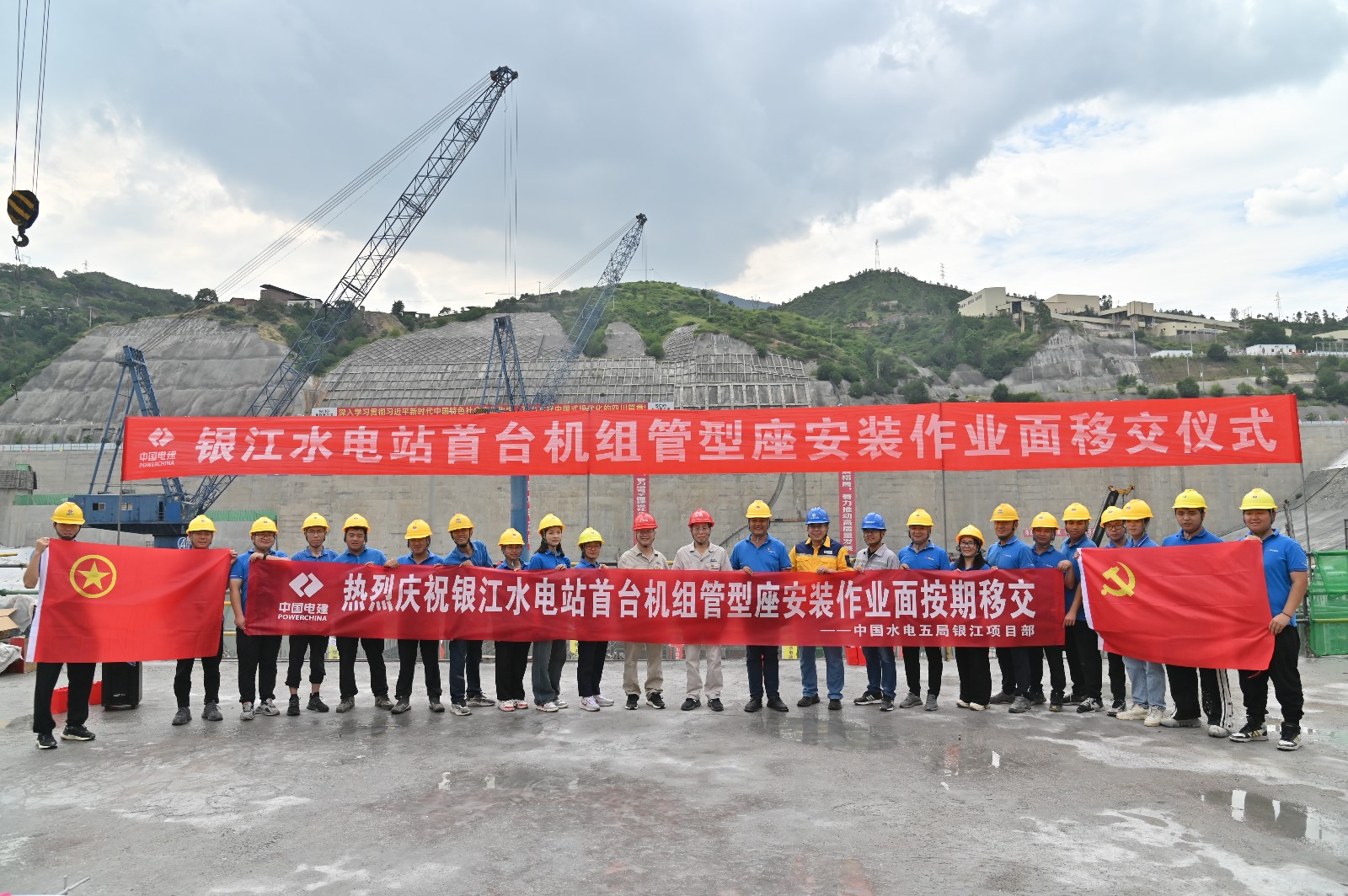 9月29日上午,正值中秋佳節(jié),攀水電公司在安裝場EL978.6平臺組織開展了銀江水電站首臺機(jī)組管形座安裝作業(yè)面移交儀式并向各參建單位送上了中秋、國慶雙節(jié)慰問,川投能源副總經(jīng)理、攀水電公司黨總支書記、董事長徐孝剛,公司財(cái)務(wù)總監(jiān)王俊森出席儀式,儀式由貴陽院常務(wù)副總監(jiān)黃俊主持,公司相關(guān)領(lǐng)導(dǎo)及參建單位共計(jì)50余人參加儀式。