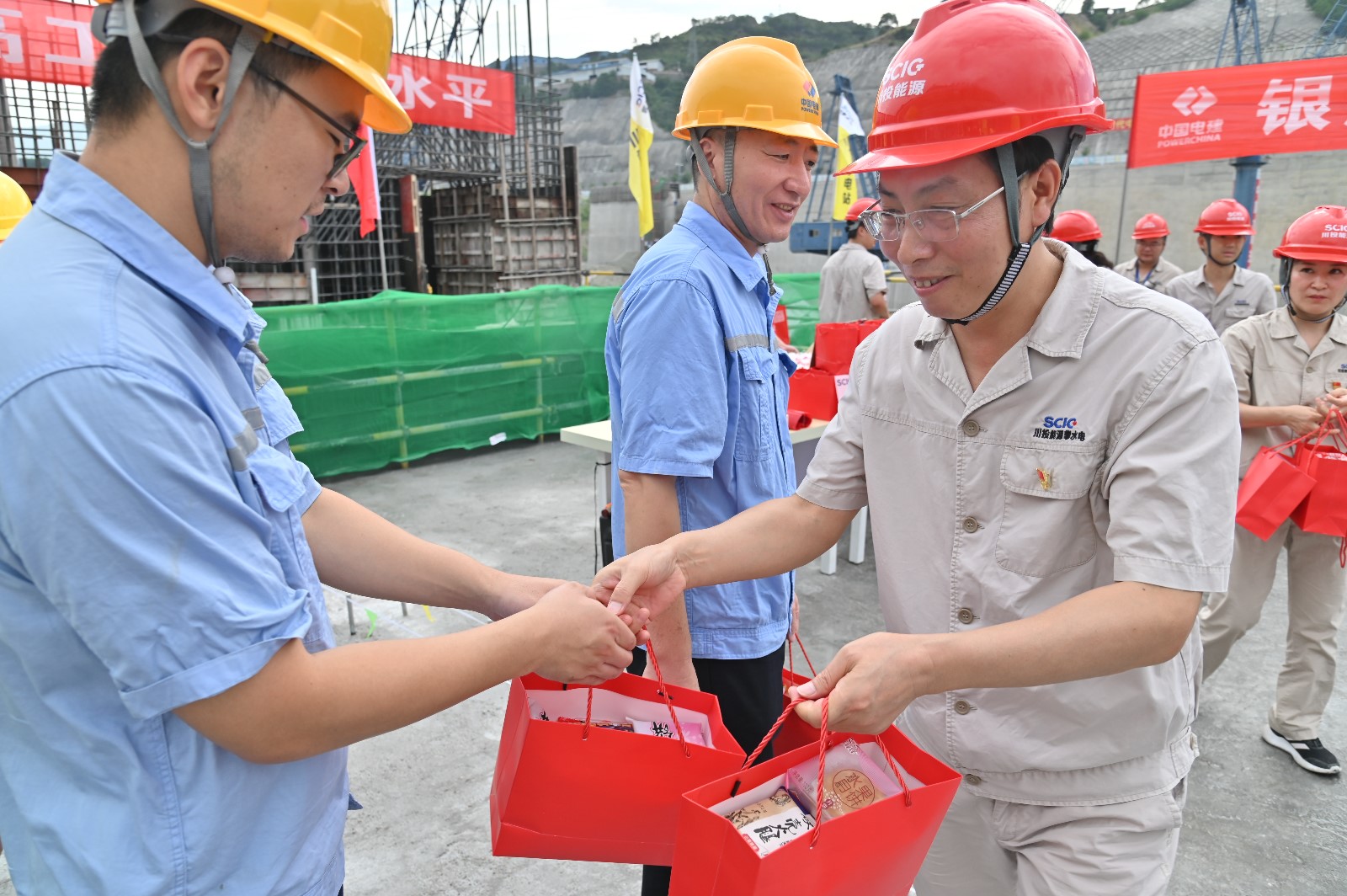 儀式最后,徐孝剛一行代表攀水電公司向中秋佳節(jié)仍堅(jiān)守在施工一線的全體人員送上了中秋、國慶節(jié)日慰問。