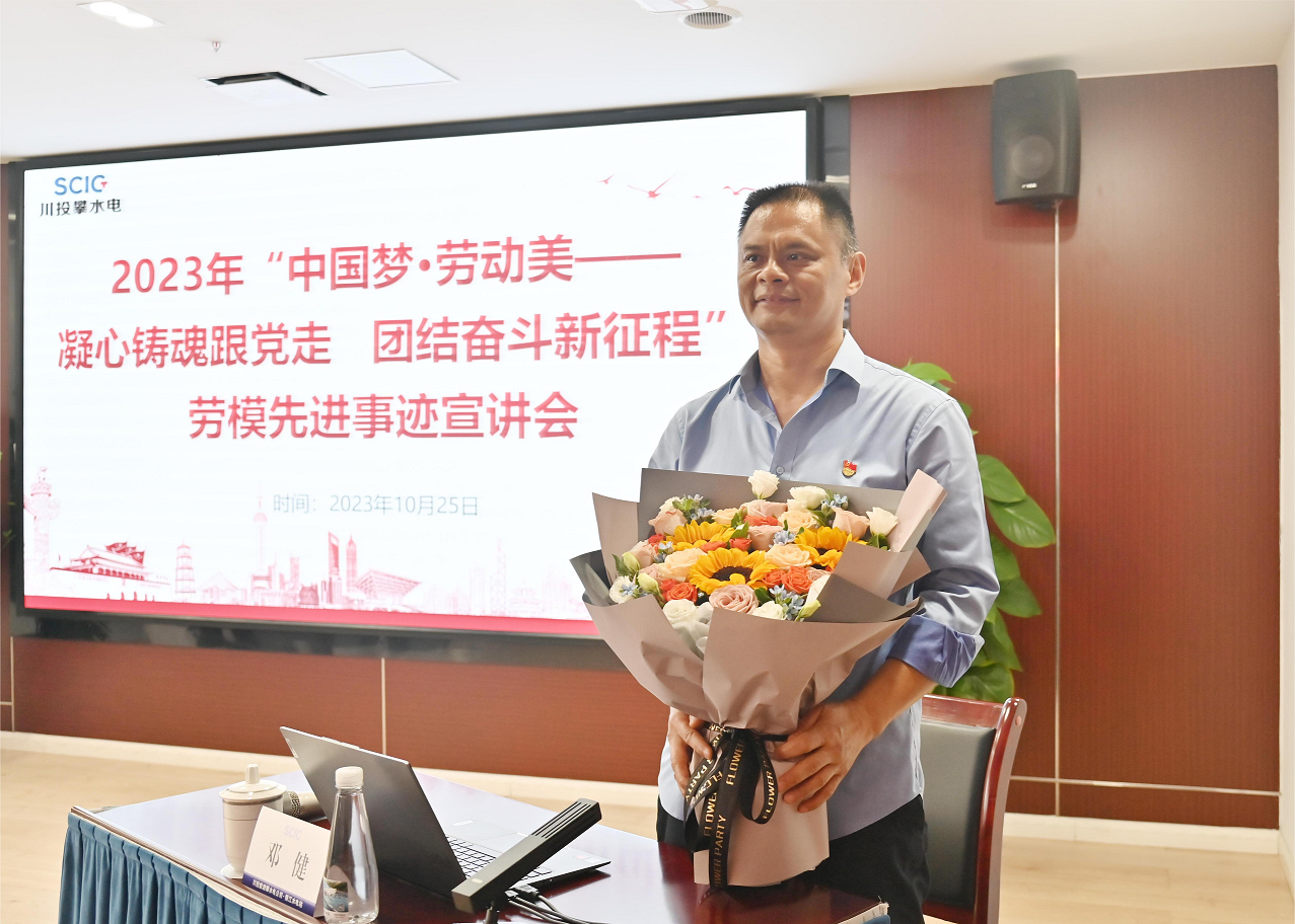 鮮花獻勞模,匠心永流傳。宣講會后,公司職工代表將一捧熱情洋溢的鮮花送到鄧健手中,向勞模獻上崇高的敬意和溫暖的慰問。通過聆聽勞模的宣講,與會職工紛紛表示受益匪淺、深受鼓舞,將以先進典型為榜樣,積極學習勞模工匠不怕苦、不怕累、勇于奮斗、敢于爭先的榜樣精神,把黨的二十大精神轉化為干事創業的強大動力,以更加昂揚的奮進姿態,切實做好本職工作,努力為銀江水電站建設和公司高質量發展做出力所能及的貢獻。下一步,公司工會將以深入學習宣傳黨的二十大精神為契機,以大力弘揚勞模精神、工匠精神為抓手,繼續組織勞模宣講,將勞模精神和先進事跡帶到職工身邊,送進職工心中,激勵和動員廣大職工凝聚勞動熱情、激發創造活力、奮力建功新時代。