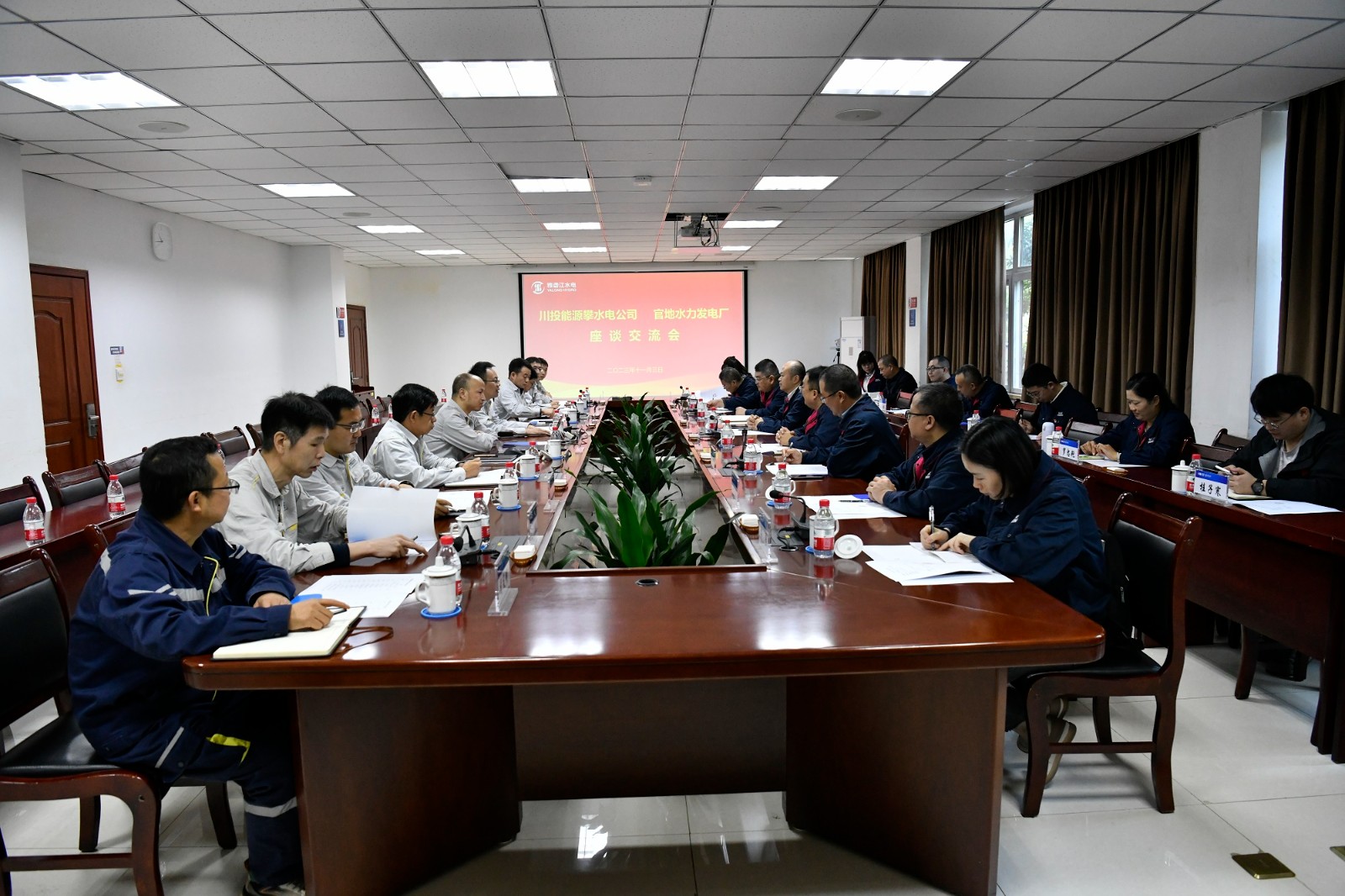 11月3日,調研組一行赴官地水電站開展調研,在電廠副廠長劉偉及相關部門負責人等陪同下,實地參觀了電廠的地下廠房、中控室、展覽廳等地并召開了交流座談會,會上,官地水電站各部門就電廠的生產運維、技術創新、生產與黨建融合、安全管理、青年員工培養、營地建設等方面分享了先進的經驗并提供了寶貴的建議,此次交流學習,開闊了員工視野,拓展了工作思路。吳巍嶼對官地水電站的熱情接待和專業指導表示感謝,并期待雙方能繼續加強交流,共謀合作機會。