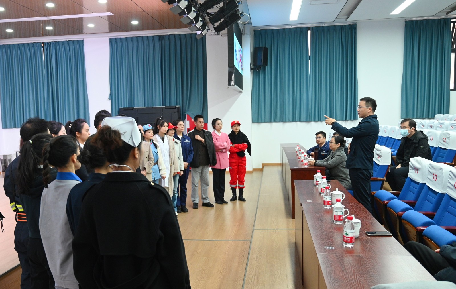 座談會結束后,何金輝一行還現場觀看并悉心指導了川投能源理論宣講隊代表集團公司參加四川省總工會職工文藝匯演所編排的節目《新時代的英雄》,親切慰問了參演人員,以觀眾的視角對節目提出了優化意見和建議,并鼓勵全體演員在文藝匯演中取得優異成績,為集團公司爭光。