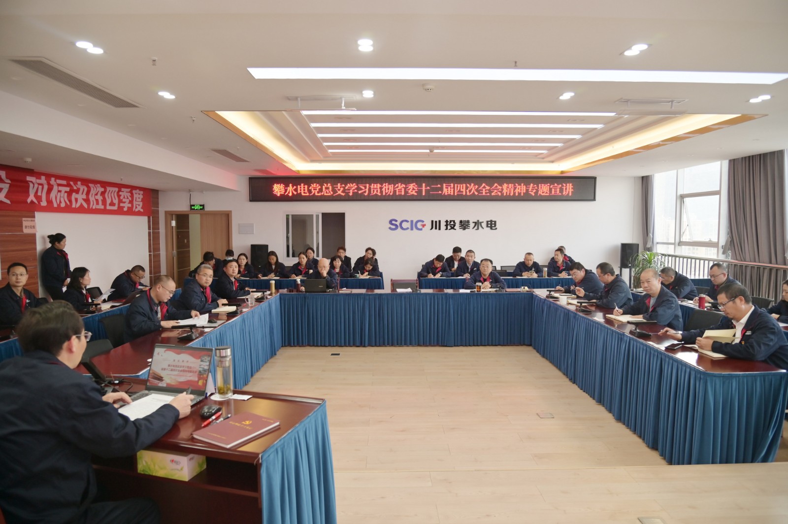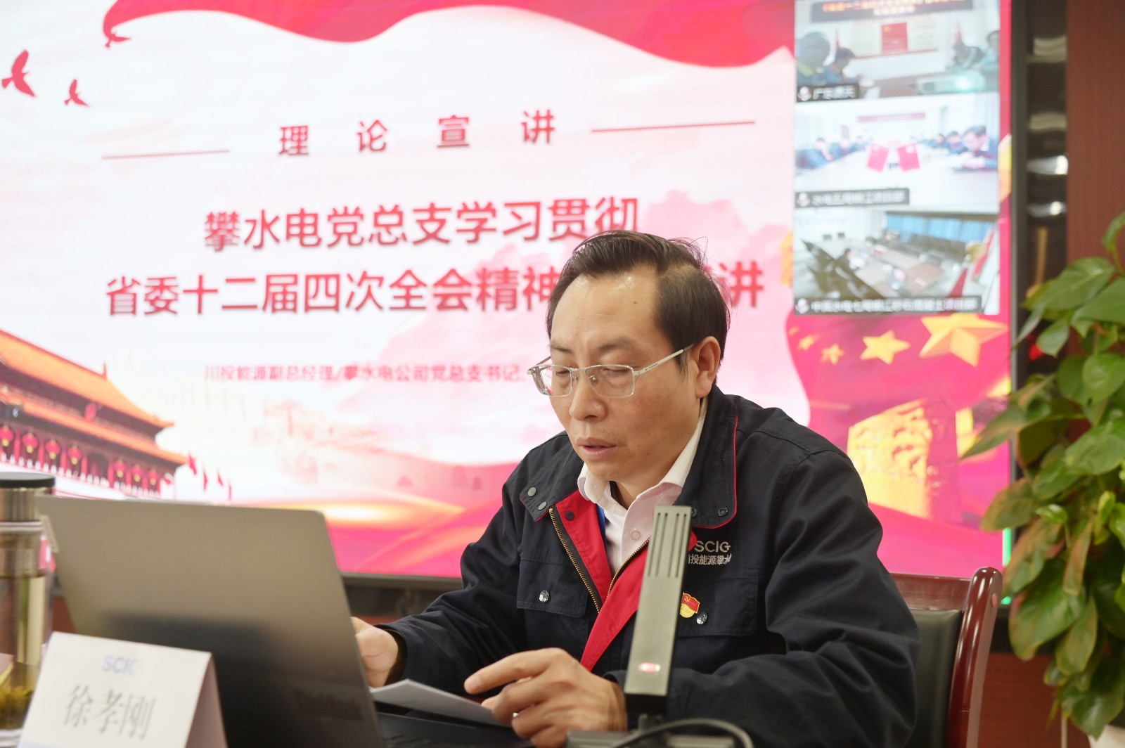 宣講會上,徐孝剛從深入領會全會主題、深入領會全會精神、推動省委全會決策部署在川投集團落地見效、推動省委全會決策部署在攀水電公司及銀江水電站落地見效四個方面進行了系統深入的解讀剖析,全體黨員干部對新時代新征程推進城鄉融合發展的總體要求、工作思路和總體目標有了明確的方向;傳達了省國資委黨委、川投集團黨委和川投能源黨委關于貫徹落實省委十二屆四次全會精神的意見和要求,著重圍繞奮力沖刺銀江水電站下閘蓄水目標、落實川投集團托底性幫扶工作和做好攀水電公司對口幫扶村城鄉融合工作三個方面進行了深入探討。