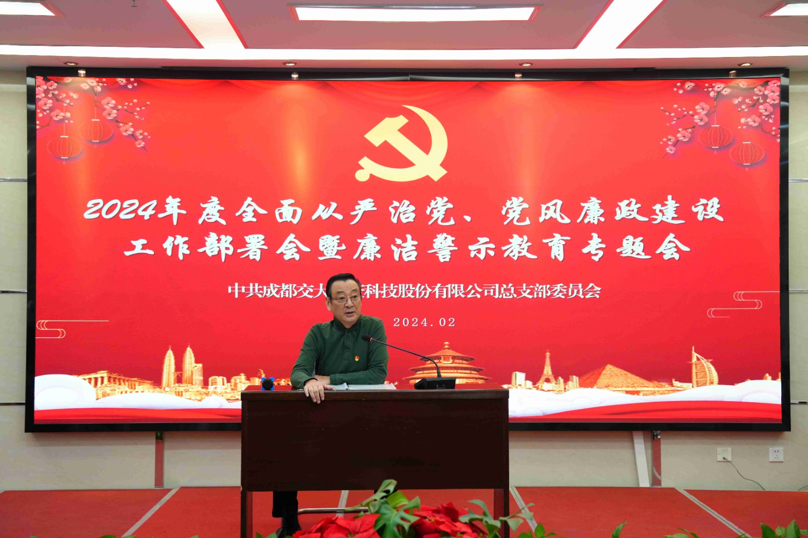 為深入推進(jìn)全面從嚴(yán)治黨,進(jìn)一步落實(shí)公司黨風(fēng)廉政建設(shè)責(zé)任制,2月27日交大光芒召開2024年度全面從嚴(yán)治黨、黨風(fēng)廉政建設(shè)工作部署會暨廉潔警示教育大會。公司領(lǐng)導(dǎo)班子成員、主管及以上管理人員、黨員參加會議。公司黨總支書記、總經(jīng)理劉成輝主持會議并作廉潔警示談話。