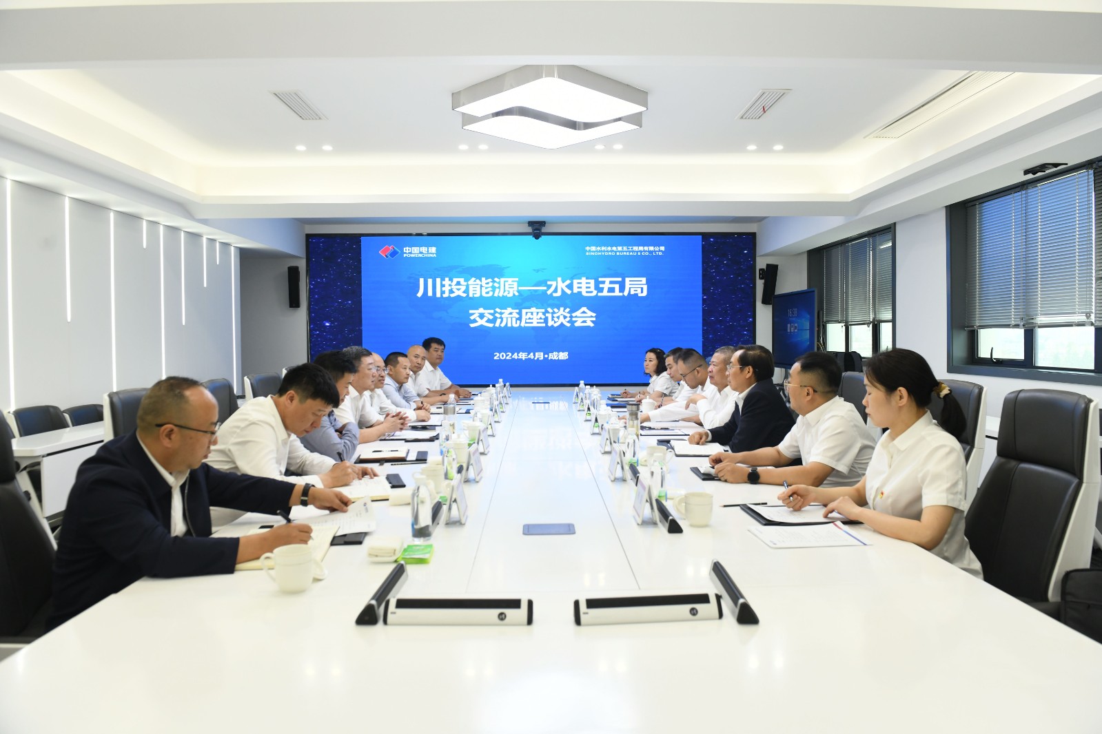 4月22日,川投能源黨委書記、副董事長、總經理楊洪率隊赴水電五局總部,就加強雙方合作、推動銀江水電站盡快實現“保一爭二”發電目標進行交流,水電五局黨委書記、董事長李崢,川投能源副總經理、攀水電公司黨總支書記、董事長徐孝剛,川投能源及攀水電公司、水電五局及下屬五公司、銀江項目部相關人員出席座談。