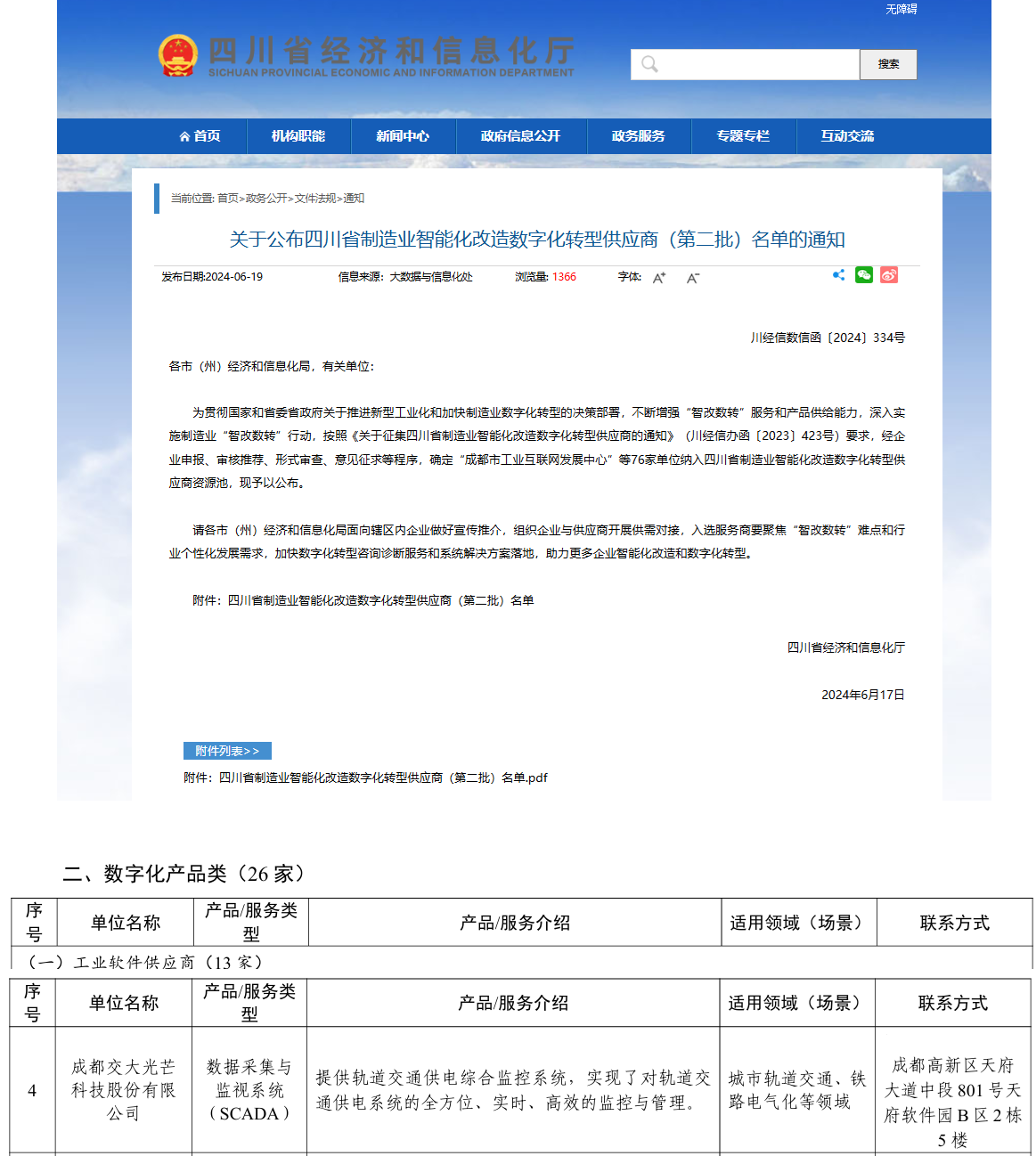 2024年6月19日,四川省經濟和信息化廳網站公布四川省制造業智能化改造數字化轉型供應商(第二批)名單,交大光芒作為數字化產品類工業軟件供應商入選四川省制造業智能化改造數字化轉型供應商資源池。