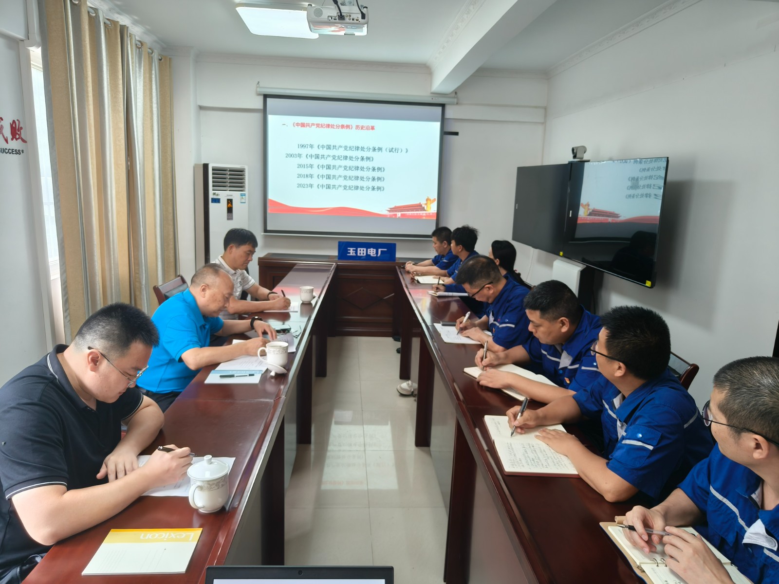 蔡承德從歷史沿革、修訂概要和條文解讀三個方面對新修訂的《中國共產黨紀律處分條例》進行細致解讀。結合近期查處的國企違紀違法典型案例,蔡承德要求,玉田電廠全體黨員要牢固樹立黨規黨紀意識,扛起政治責任,充分發揮黨員先鋒模范作用;要自覺修筑自律防線、設立篤行底線,常懷律己之心,常思貪欲之害;要嚴守工作紀律,嚴抓安全生產,加大扭虧治虧力度,為公司的發展貢獻力量。