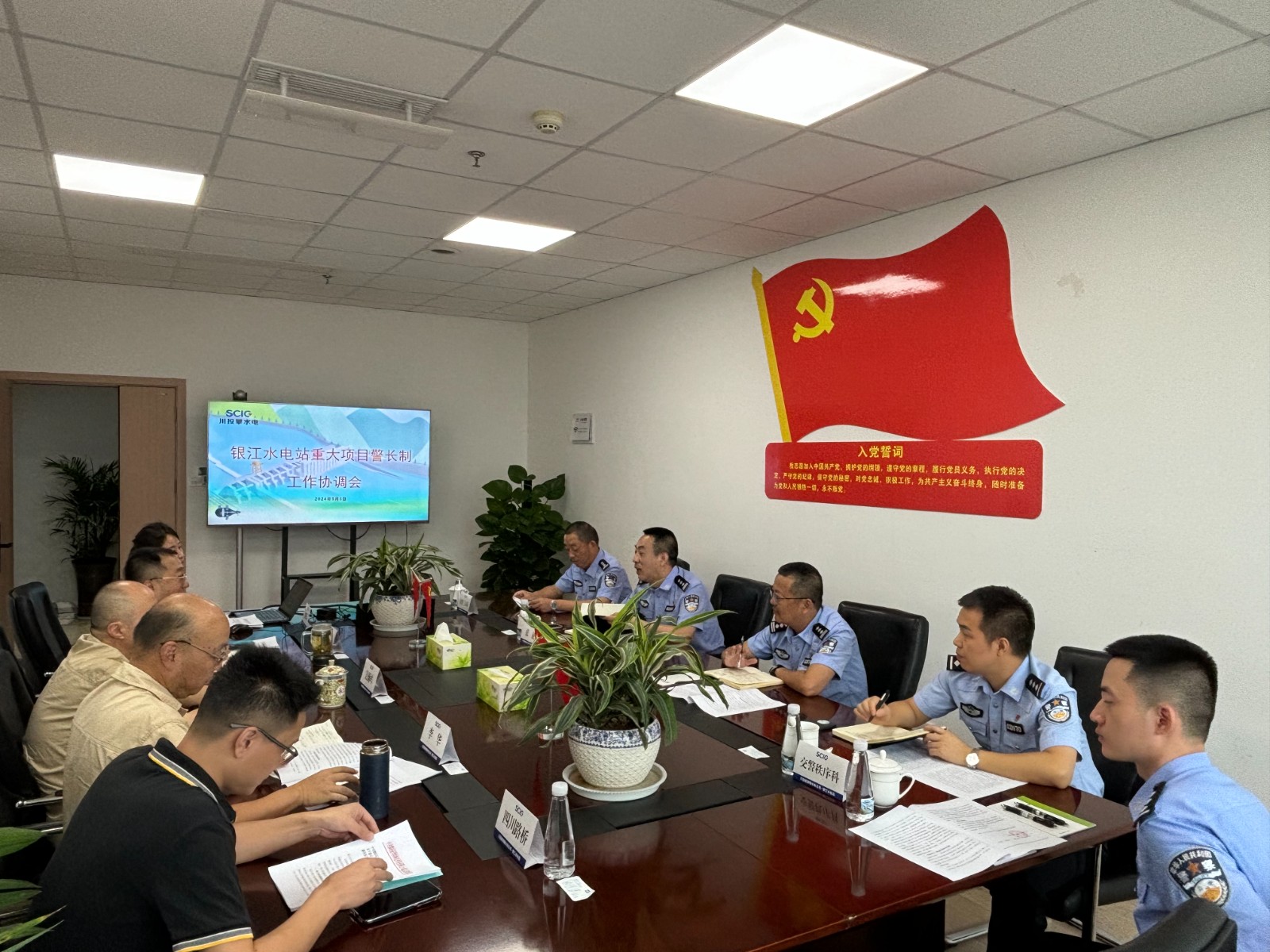 與會(huì)人員一致認(rèn)為,警企雙方要進(jìn)一步堅(jiān)持黨建引領(lǐng),發(fā)揮“重點(diǎn)建設(shè)項(xiàng)目警長(zhǎng)制”作用,建立協(xié)作機(jī)制。會(huì)議決定,一是定期召開(kāi)協(xié)調(diào)會(huì)、聯(lián)席會(huì),加強(qiáng)溝通協(xié)調(diào)、互通情況,及時(shí)為銀江項(xiàng)目解決所屬范圍內(nèi)的困難問(wèn)題,全力確保銀江水電站項(xiàng)目安全順利竣工投產(chǎn),為助力攀枝花市高質(zhì)量發(fā)展建設(shè)共同富裕試驗(yàn)區(qū)作出積極貢獻(xiàn);二是積極組織警企共建活動(dòng),通過(guò)黨員隊(duì)伍教育管理,采用聯(lián)合開(kāi)展黨課、紅色教育、主題黨日等方式,持續(xù)提升警企雙方隊(duì)伍建設(shè)水平,培養(yǎng)打造“項(xiàng)目警長(zhǎng)護(hù)平安、警企共建促發(fā)展”的黨建品牌。