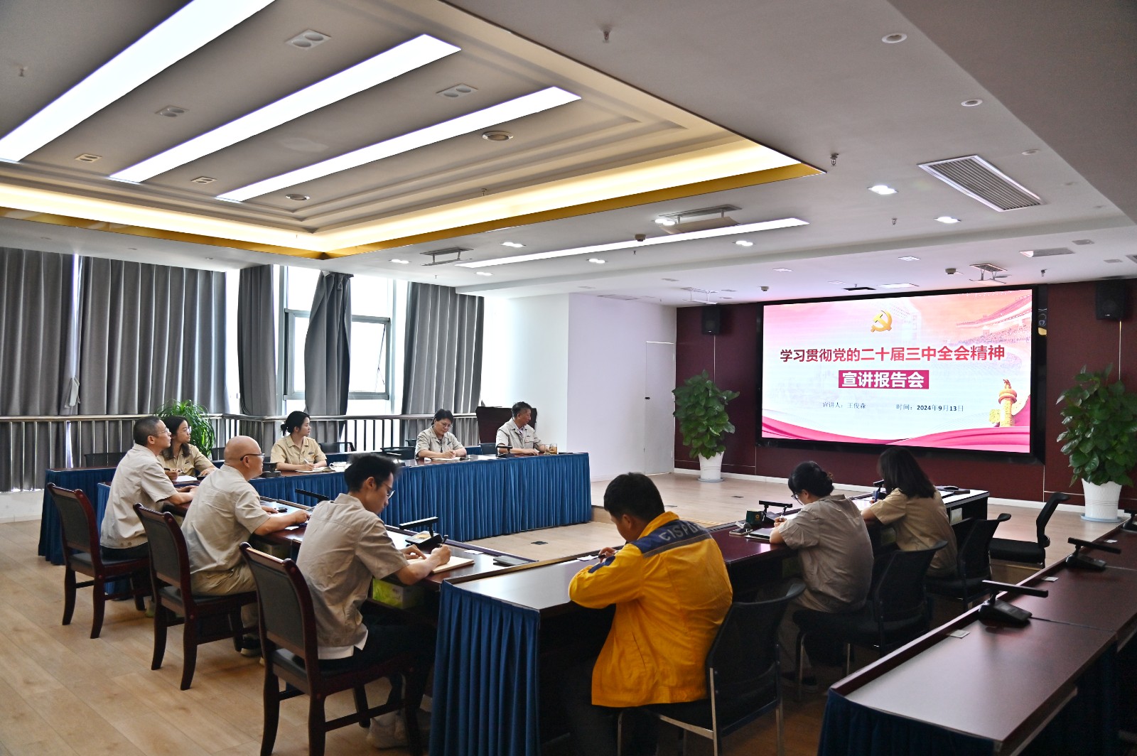 王俊森緊緊圍繞黨的二十屆三中全會精神,從深刻把握全會的重大歷史意義和深遠歷史影響,準確理解進一步全面深化改革總體要求、重大舉措和抓好全會精神貫徹落實的基本要求等方面,對黨的二十屆三中全會精神進行系統闡釋,針對如何全面落實深化國企改革的重點任務進行了解讀。結合公司工程建設及即將投入生產運行的實際情況,他強調,要提前做好2025年預算編制和收入成本等會計核算和建設財務共享中心等準備工作,為完成明年所有機組投產發電目標提供堅實保障,促進工程建設優質高效和公司可持續發展。同時,在面對不斷變化的經濟環境時,要充分學習領會黨的二十屆三中全會精神實質,并將其轉化為推動工作的強大動力,主動適應深化國企改革對財務工作的新要求,為公司高質量發展作出貢獻。