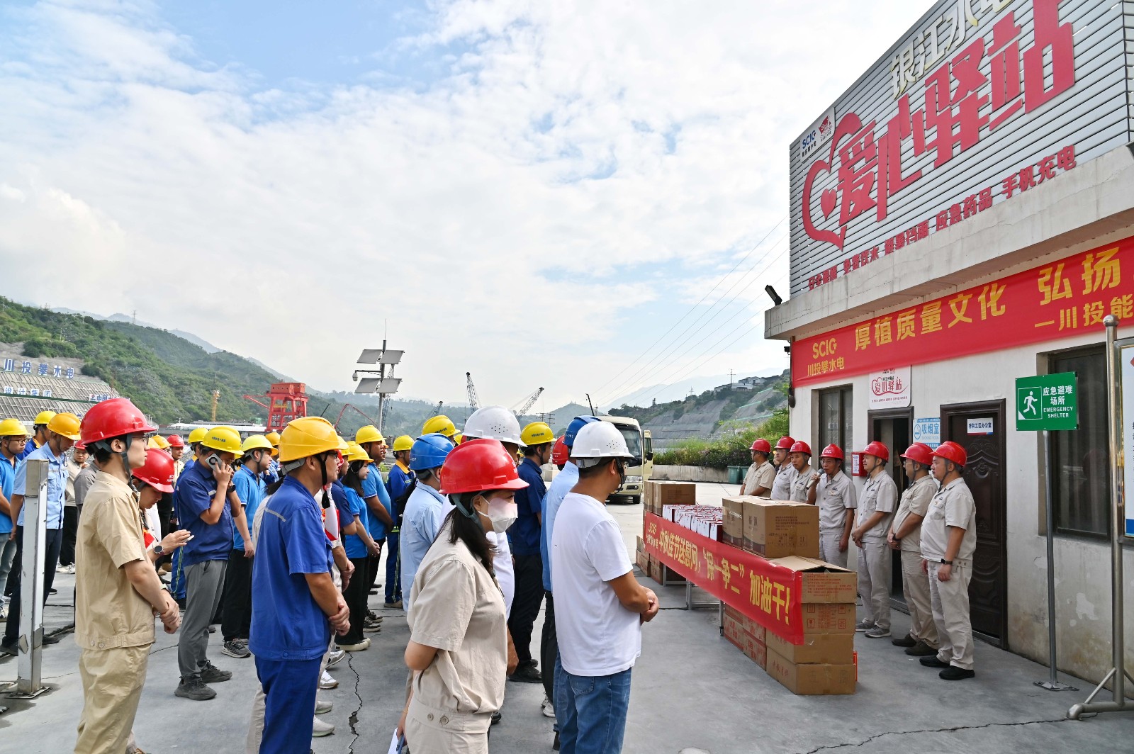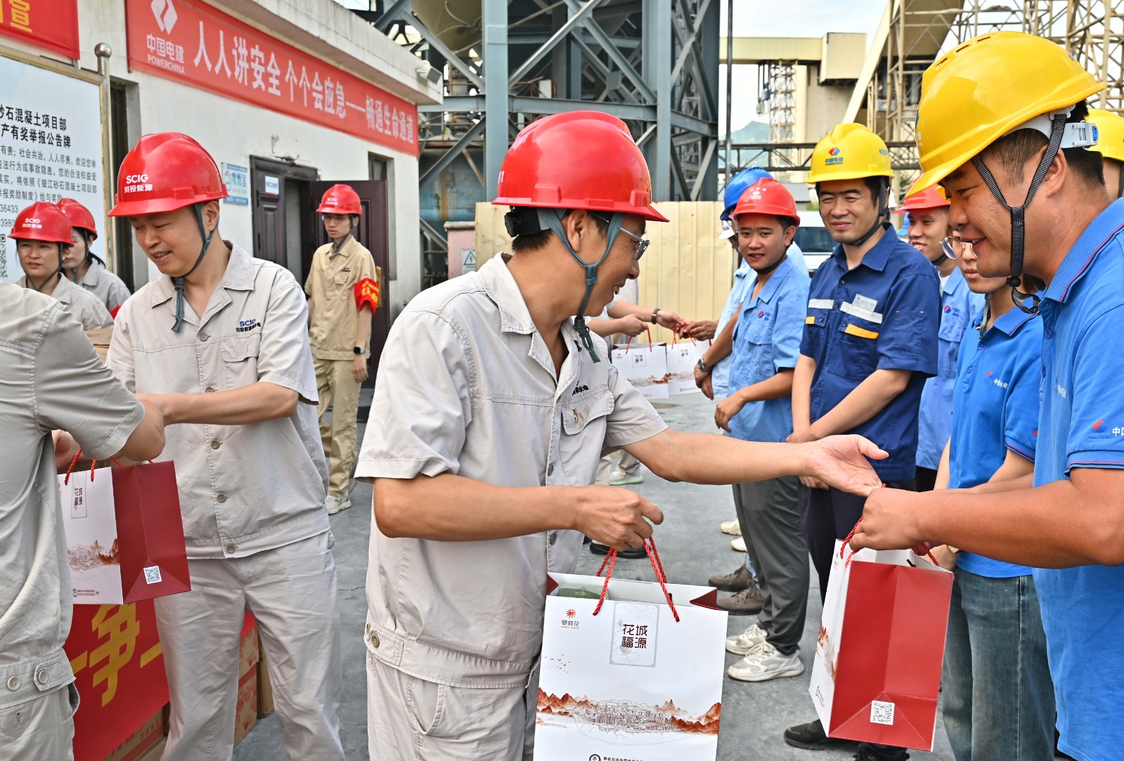 9月17日,正值萬家團圓的中秋佳節(jié),而銀江水電站工地依舊機器轟鳴,一派熱火朝天的繁忙景象。川投能源副總經(jīng)理、攀水電公司黨總支書記、董事長徐孝剛帶領(lǐng)攀水電公司領(lǐng)導(dǎo)班子全體成員來到愛心驛站,為1200余名建設(shè)者送上香甜的月餅和清香的涼茶,向他們表達(dá)深切慰問與崇高敬意。
