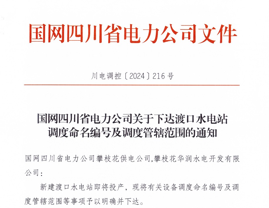 銀江水電站投產(chǎn)發(fā)電在即,因“銀江”二字已被銀江變電站占用,攀水電公司動員全體員工集思廣益,挑選符合規(guī)定又有寓意的調(diào)度名。10月8日,在國網(wǎng)四川省電力公司和川投能源的指導幫助下,經(jīng)過積極對接、多方協(xié)調(diào),攀水電公司成功取得國網(wǎng)四川省電力公司對銀江水電站和送出線路的調(diào)度命名,銀江水電站的調(diào)度名為“渡口水電站”,銀江水電站220kV送出線路調(diào)度名為“220kV渡銀線”。