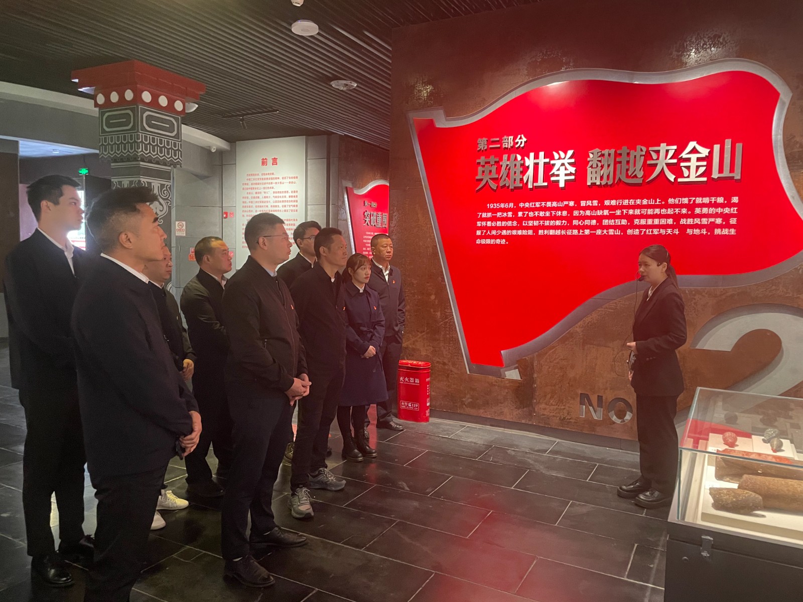 在講解員的帶領(lǐng)下,全體黨員到紅軍長征翻越夾金山紀(jì)念館、陳云出川史實(shí)陳列館開展現(xiàn)場教學(xué),聆聽《還山軍民魚水情》《革命理想高于天》微黨課。在紅軍長征翻越夾金山紀(jì)念館,一幅幅珍貴的歷史照片、一件件生動的實(shí)物展以及詳細(xì)的史料介紹,讓黨員們近距離了解紅軍攻克寶興,翻越夾金天險,在壯麗的紅軍長征史上留下的濃墨重彩篇章。在陳云出川史實(shí)陳列館,黨員聆聽《陳云出川》微黨課,了解陳云同志臨危受命輾轉(zhuǎn)至莫斯科重建與共產(chǎn)國際的聯(lián)系的艱險出川歷程,被老一輩革命先驅(qū)大無畏的拼搏奮斗精神所感染。