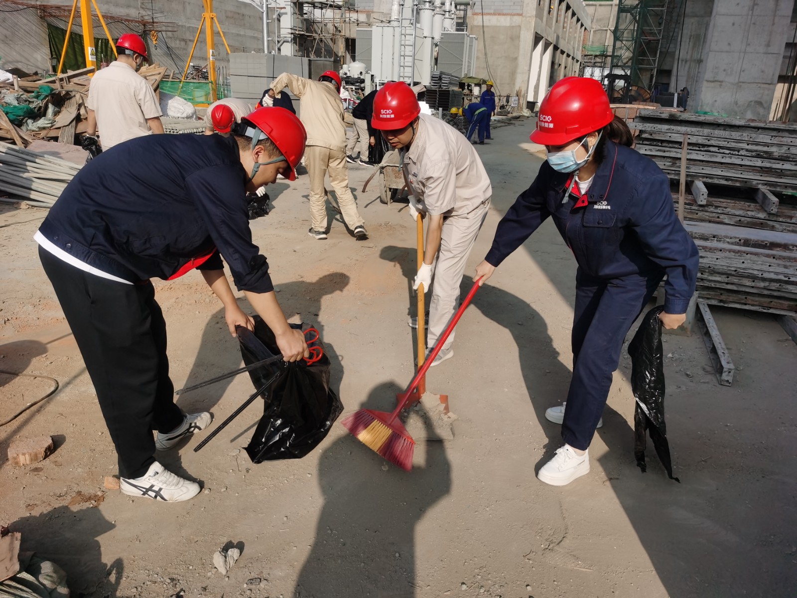 活動開始前,安全環保部經理唐云宏從安全生產應急知識、工地安全防護和注意事項方面進行了簡要培訓,提醒、督促大家在施工現場一定要做到“抬頭看天,低頭看路”,認真做好安全防護,隨時保持安全警惕性。隨后,各支部黨員同志、志愿者們斗志昂揚、團結協作,分為三個小組開展工地清掃、整治衛生死角活動,大家手持垃圾袋、掃帚、火鉗等工具,對壩頂、GIS樓、上游導流明渠、鋼筋場等區域進行了集中清理整治,共同營造了干凈整潔的施工環境。