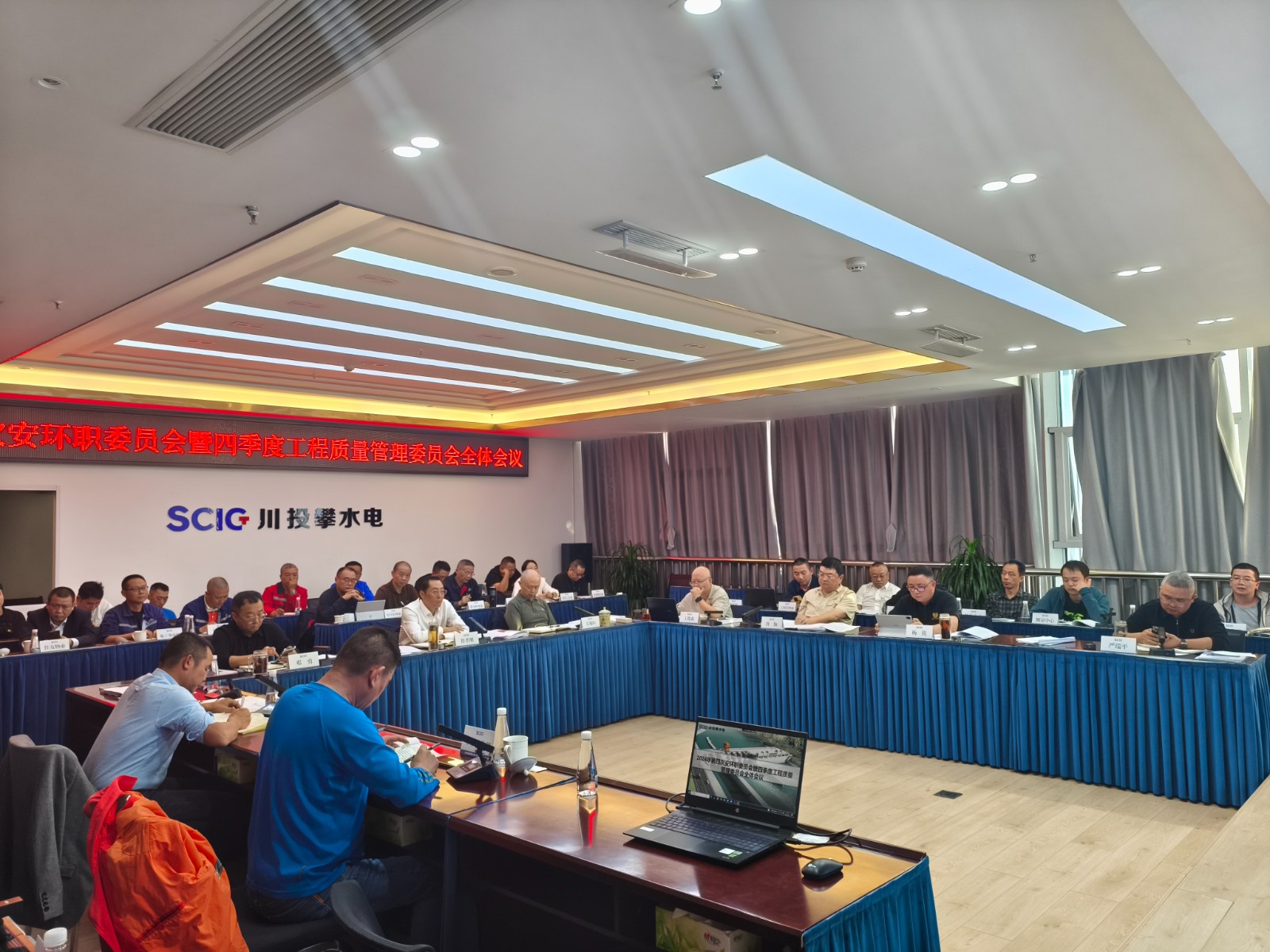 11月16日下午,在銀江水電站全力沖刺首臺機組發電之際,攀水電公司在2620會議室組織召開了2024年四季度工程質量管理委員會全體會議,會議由川投能源副總經理、攀水電公司黨總支書記、董事長、質委會主任徐孝剛主持,攀水電公司黨總支副書記、總經理、質委會主任吳巍嶼及公司領導、各部門、長江設代處、各監理部、第三方檢測機構、各施工單位項目部負責人及質量負責人共計40余人參加會議。